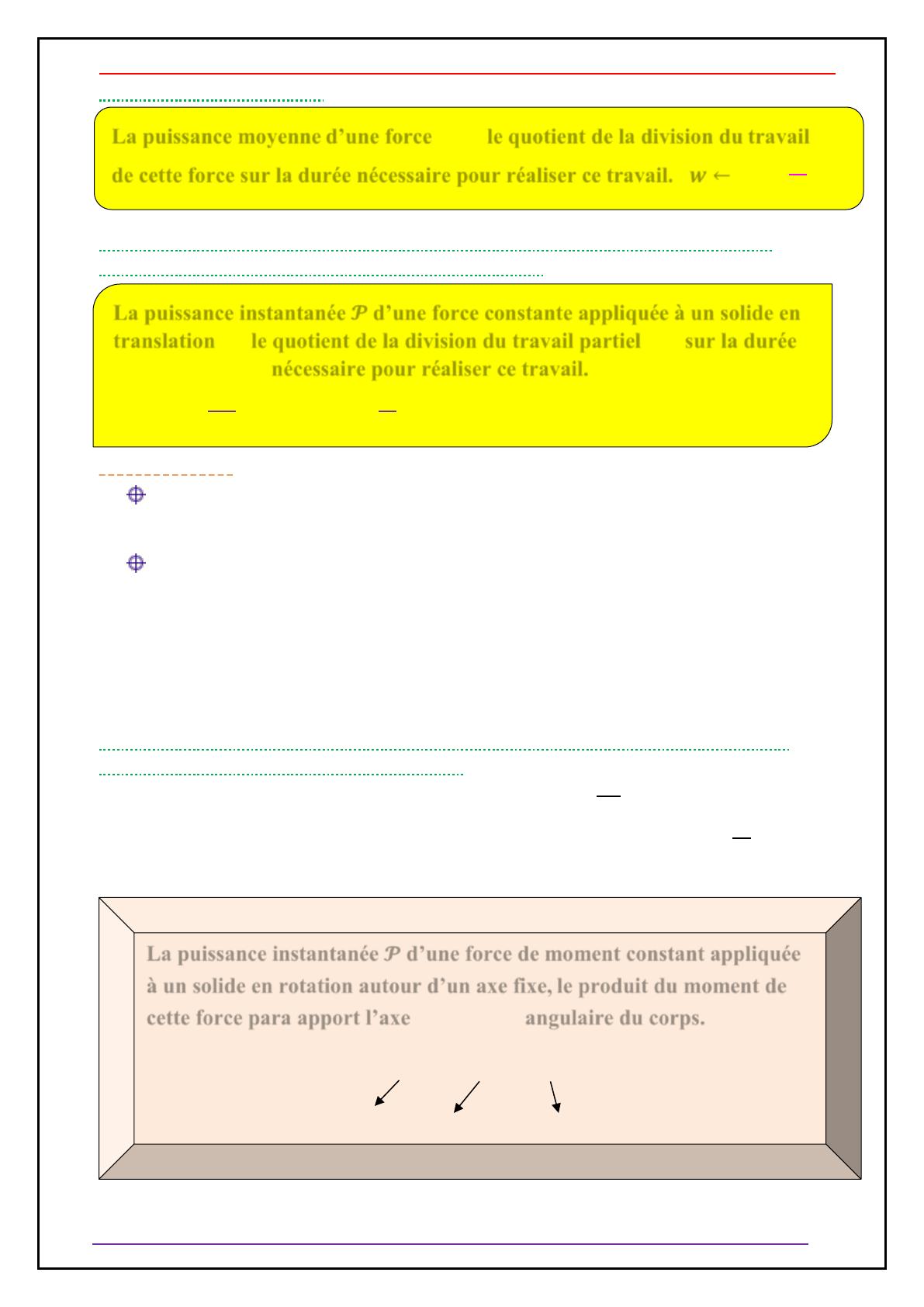 III – Puissance d’une force ou d’un ensemble des forces :