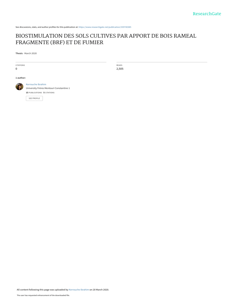 BIOSTIMULATION DES SOLS CULTIVES PAR APPORT DE BOIS RAMEAL