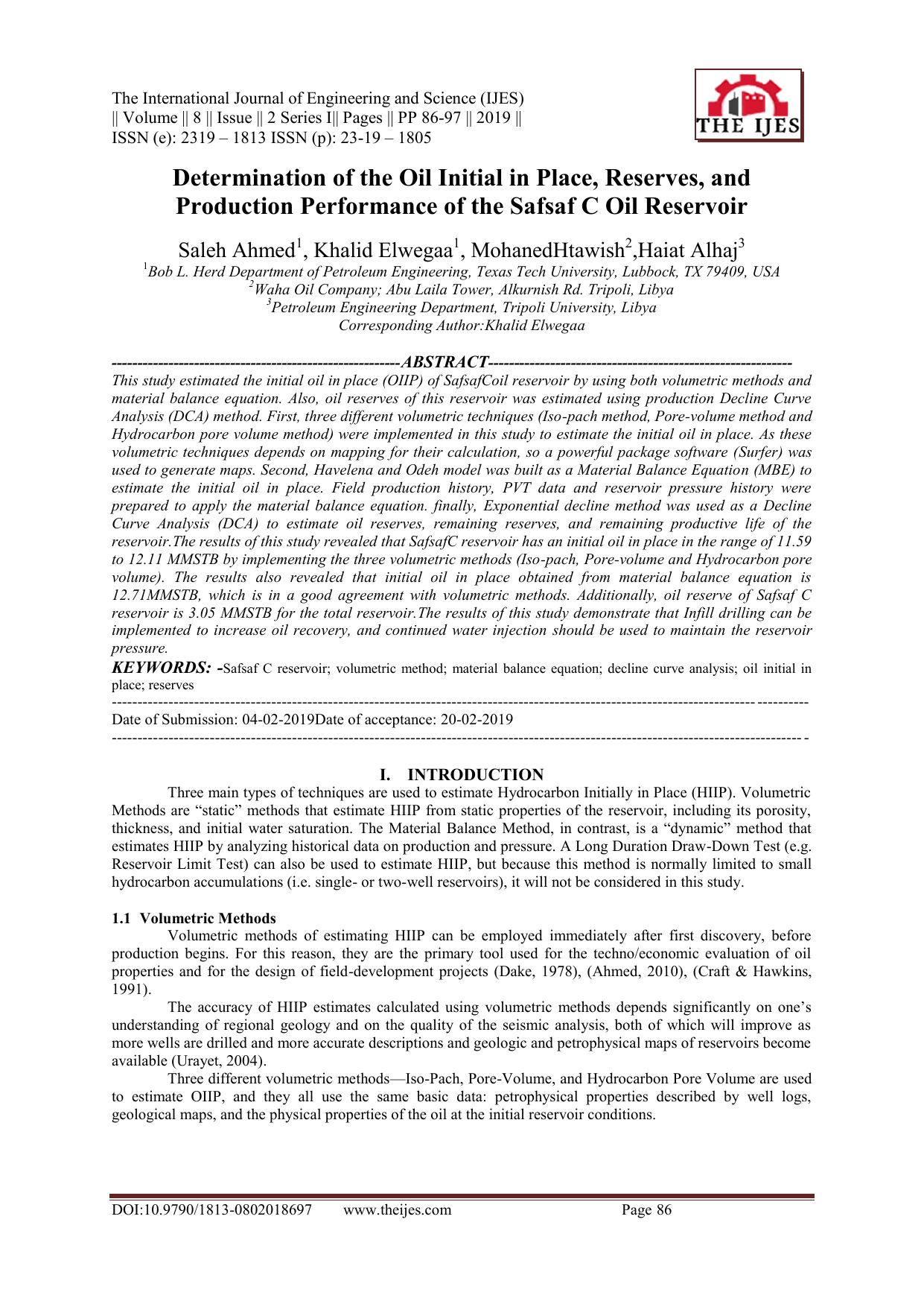 Safsaf C Oil Reservoir: OIIP, Reserves & Production Performance Study