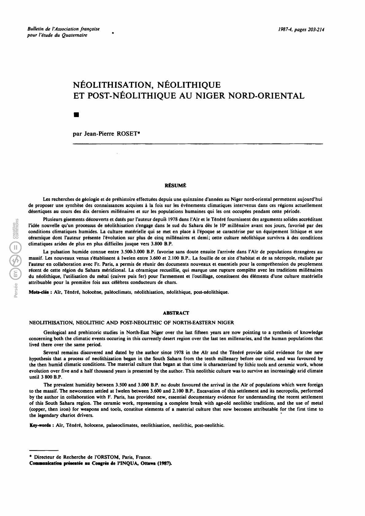 Geological and prehistoric studies in North-East Niger over the last fifteen years are now pointing to a