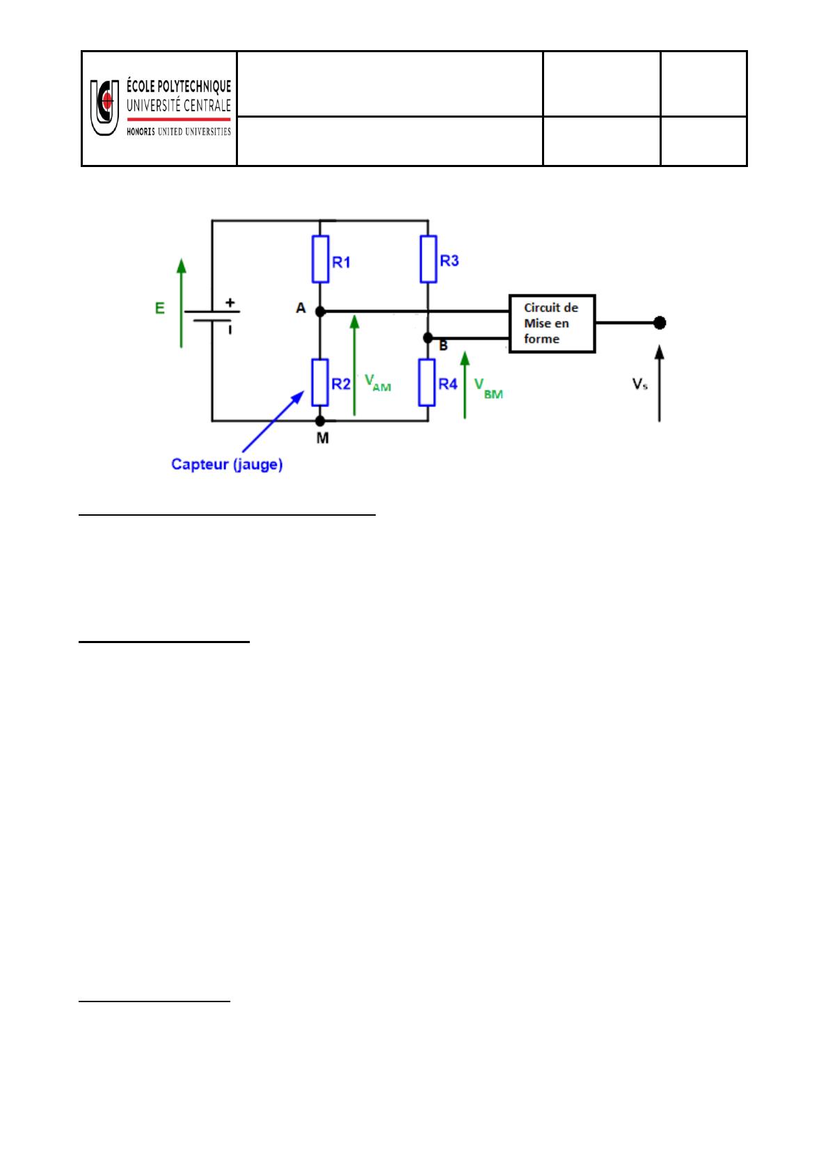 3. Déterminer l'expression de la tension VBM en fonction de R3, R4 et E, puis en fonction de