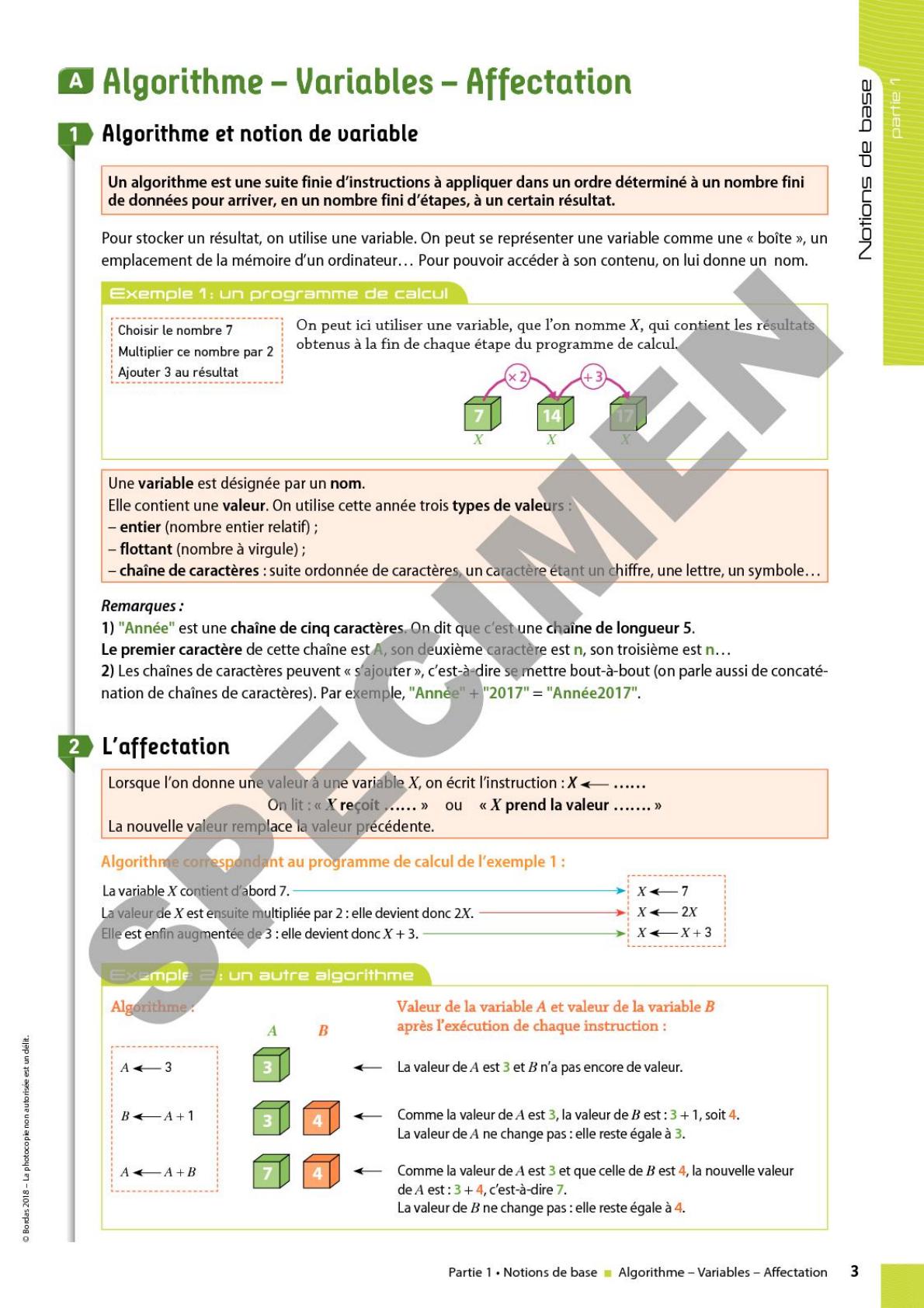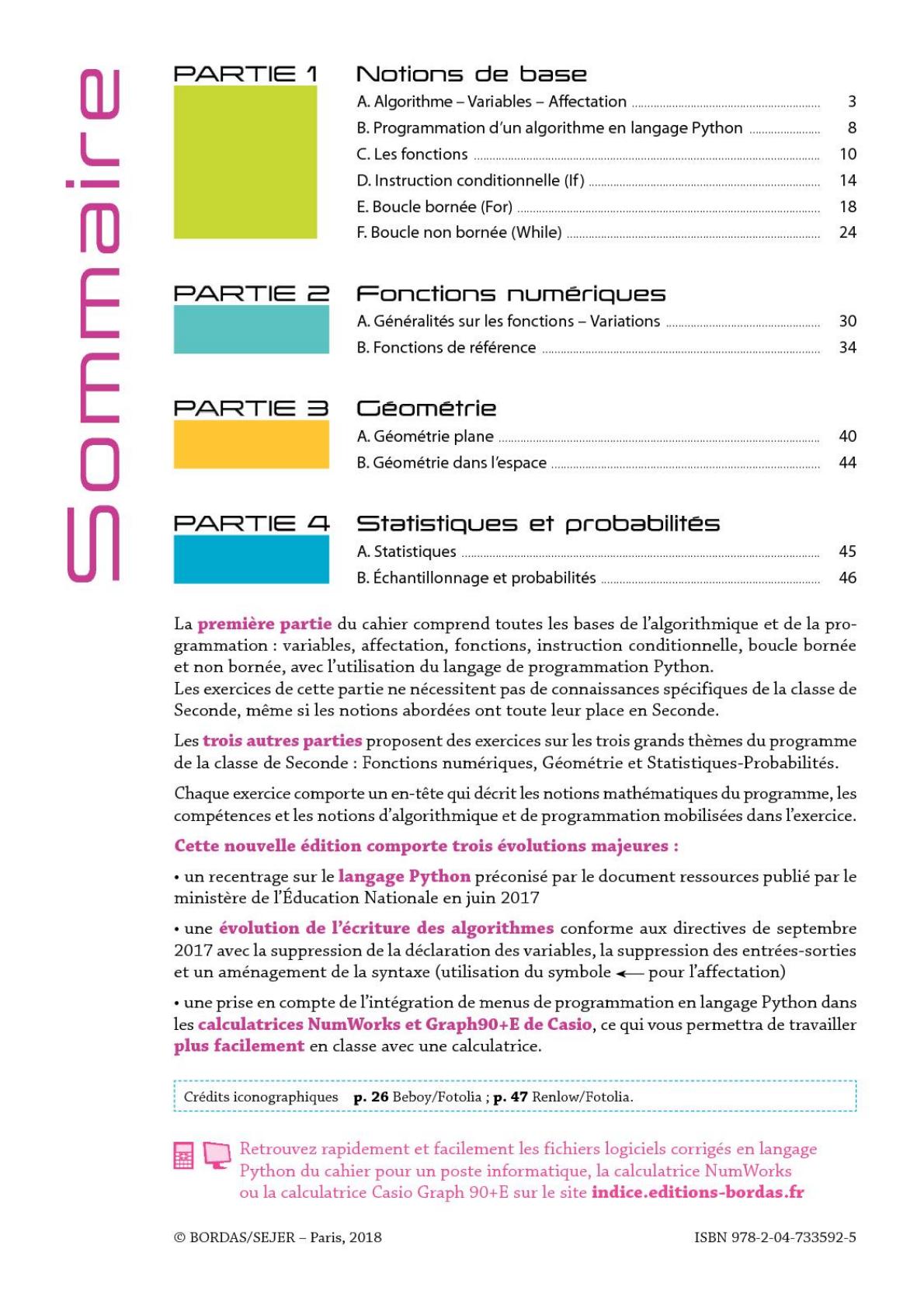 Cahier d'Algorithmique et Programmation 2de - Python - Bordas 2018