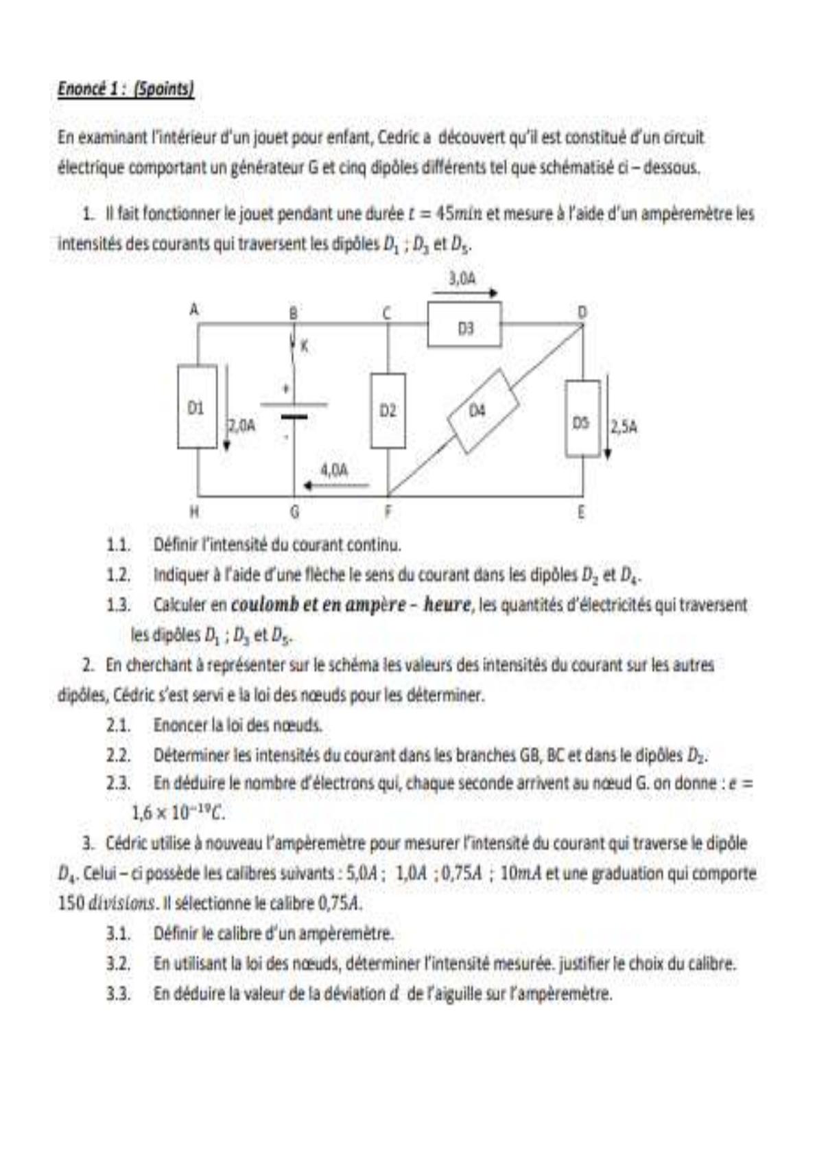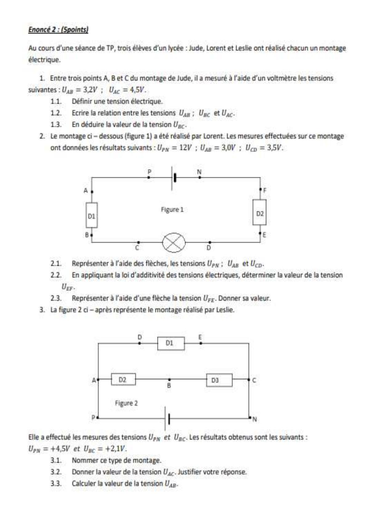 L’oscillogramme ci-dessous représente la tension visualisée sur l’écran d’un oscilloscope. Les réglages de