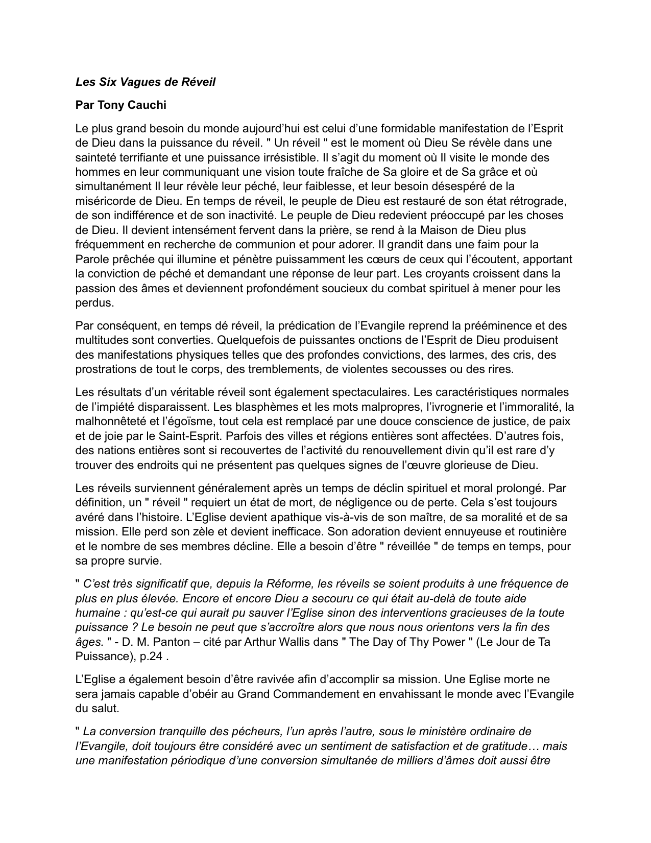 assemblées en état de déchéance progressive. Les débuts du réveil peuvent être localisés vers