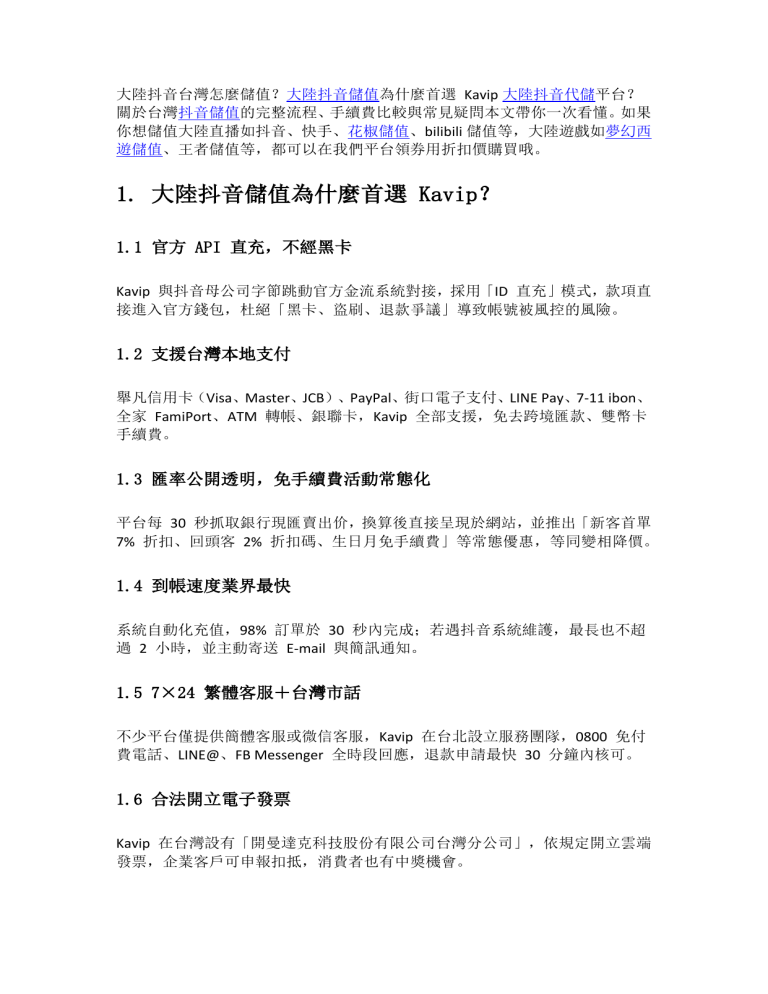 1. 大陸抖音儲值為什麼首選 Kavip?