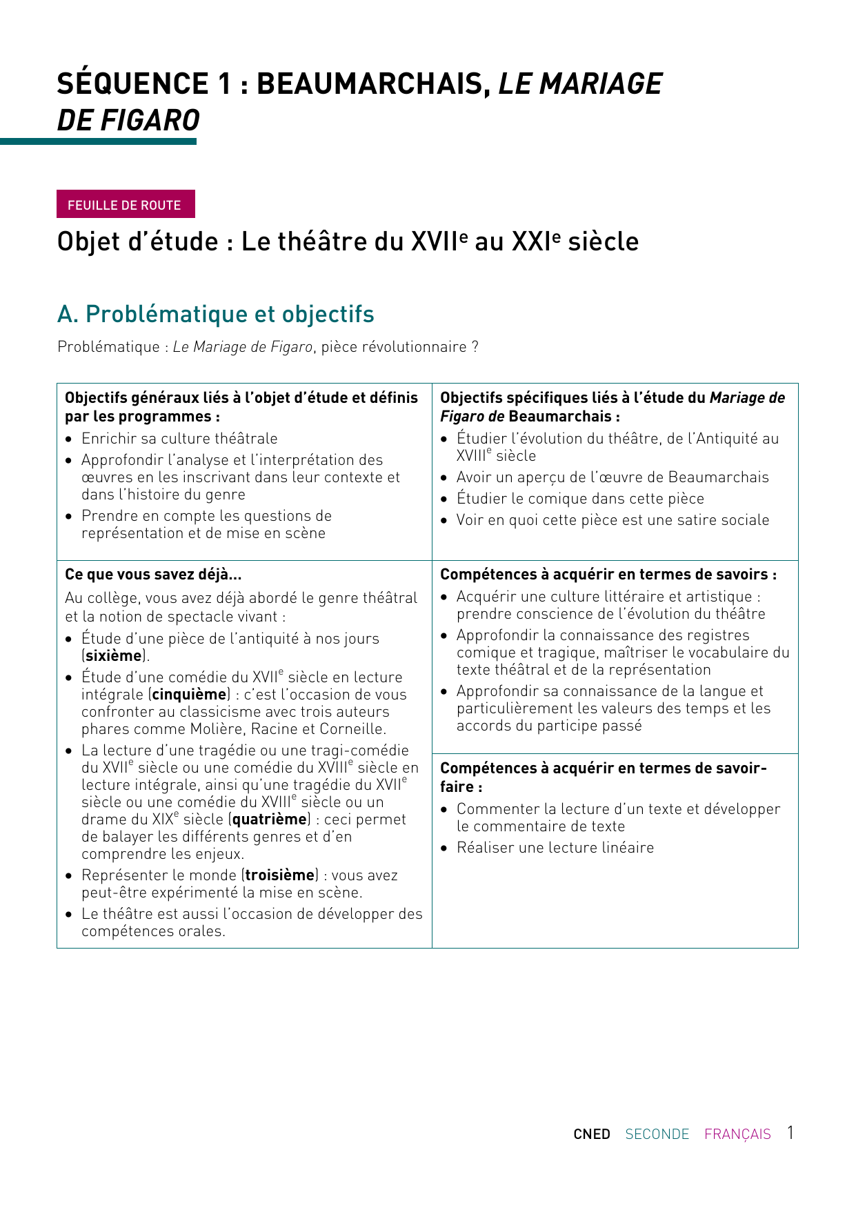 Beaumarchais : Le Mariage de Figaro - Feuille de route