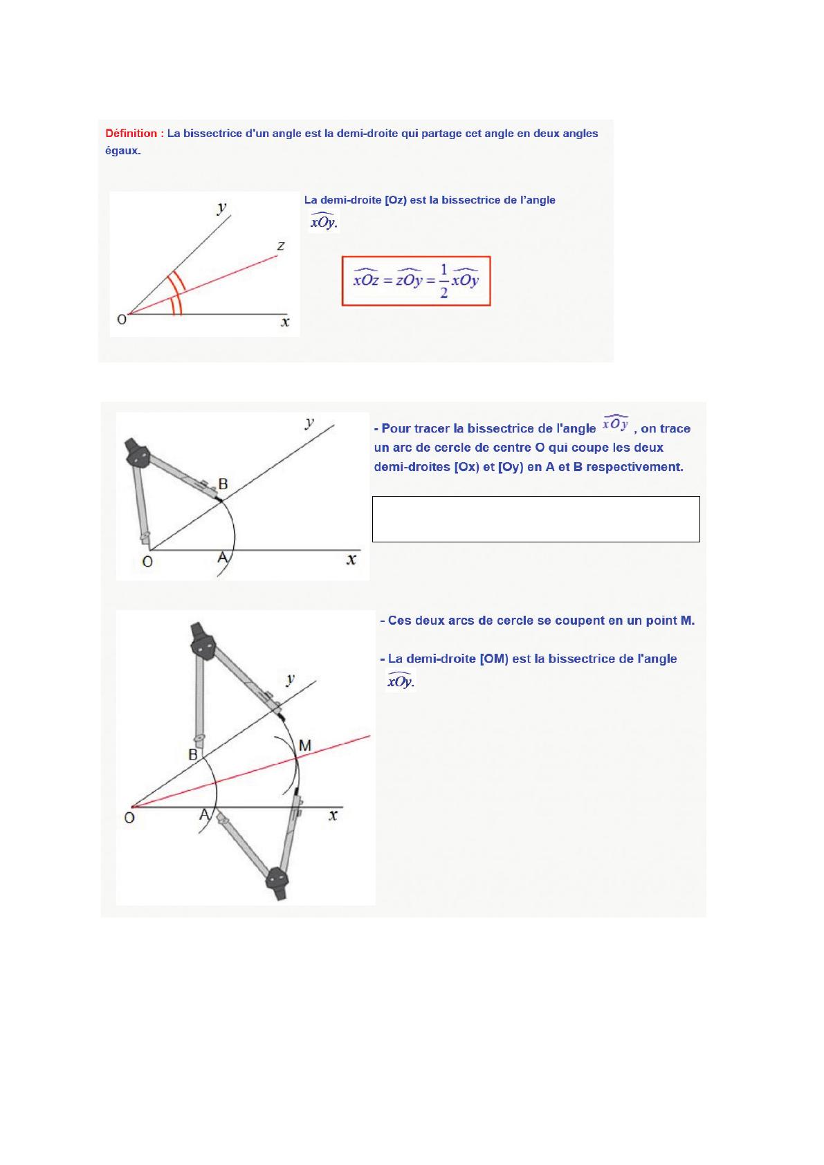 Construction de la bissectrice avec un compas et une règle (non graduée) :