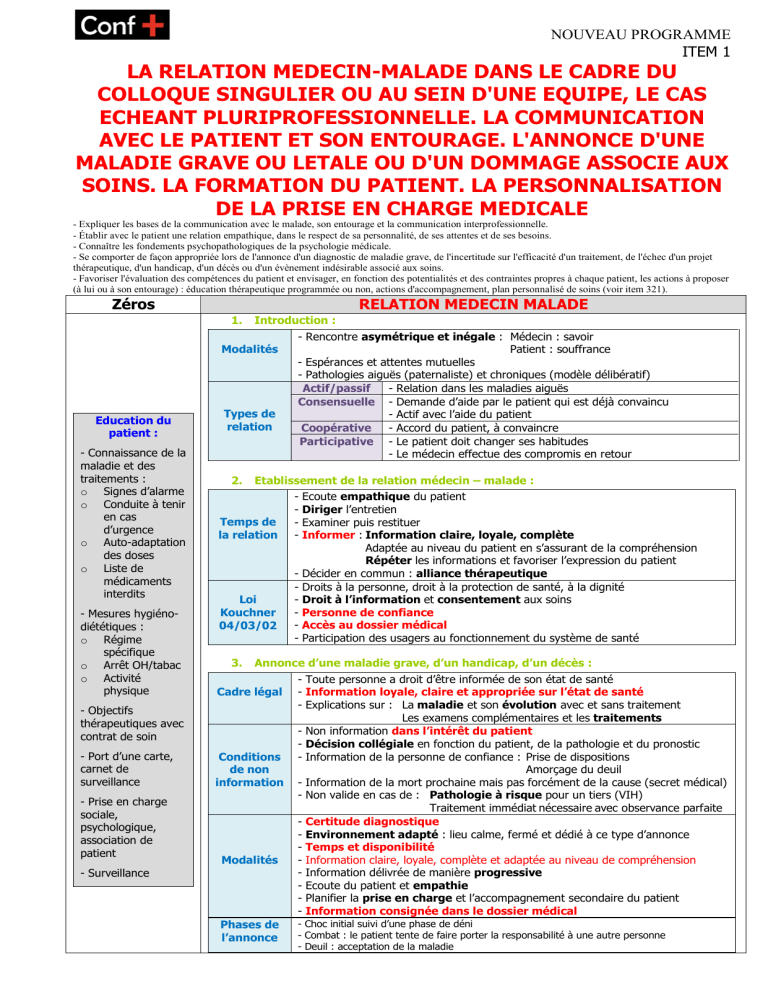 Relation Médecin-Malade: Communication, Annonce, Éducation Patient