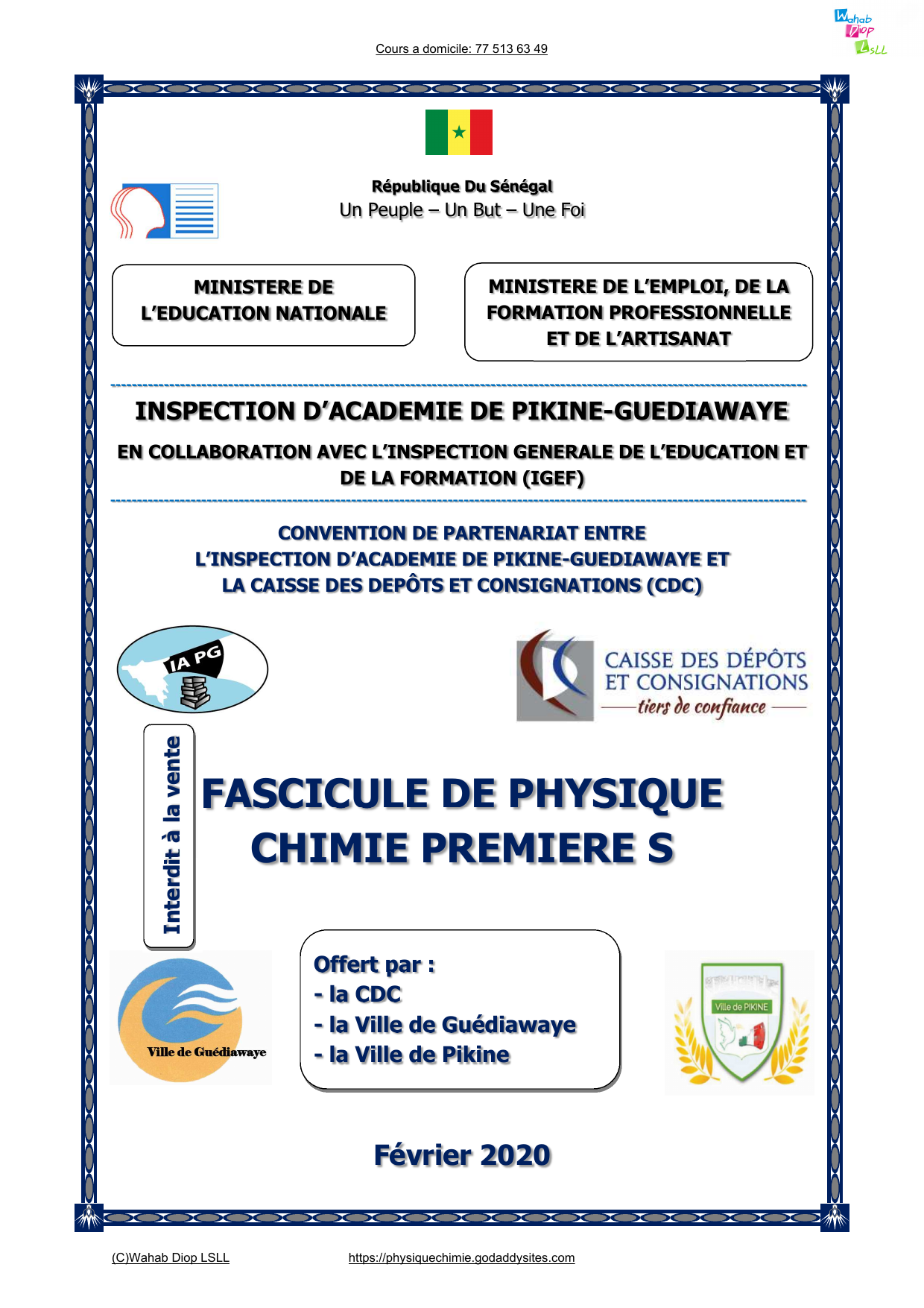 Fascicule de Sciences Physiques de Première S /IA Pikine-Guediawaye /CDC - 2018
