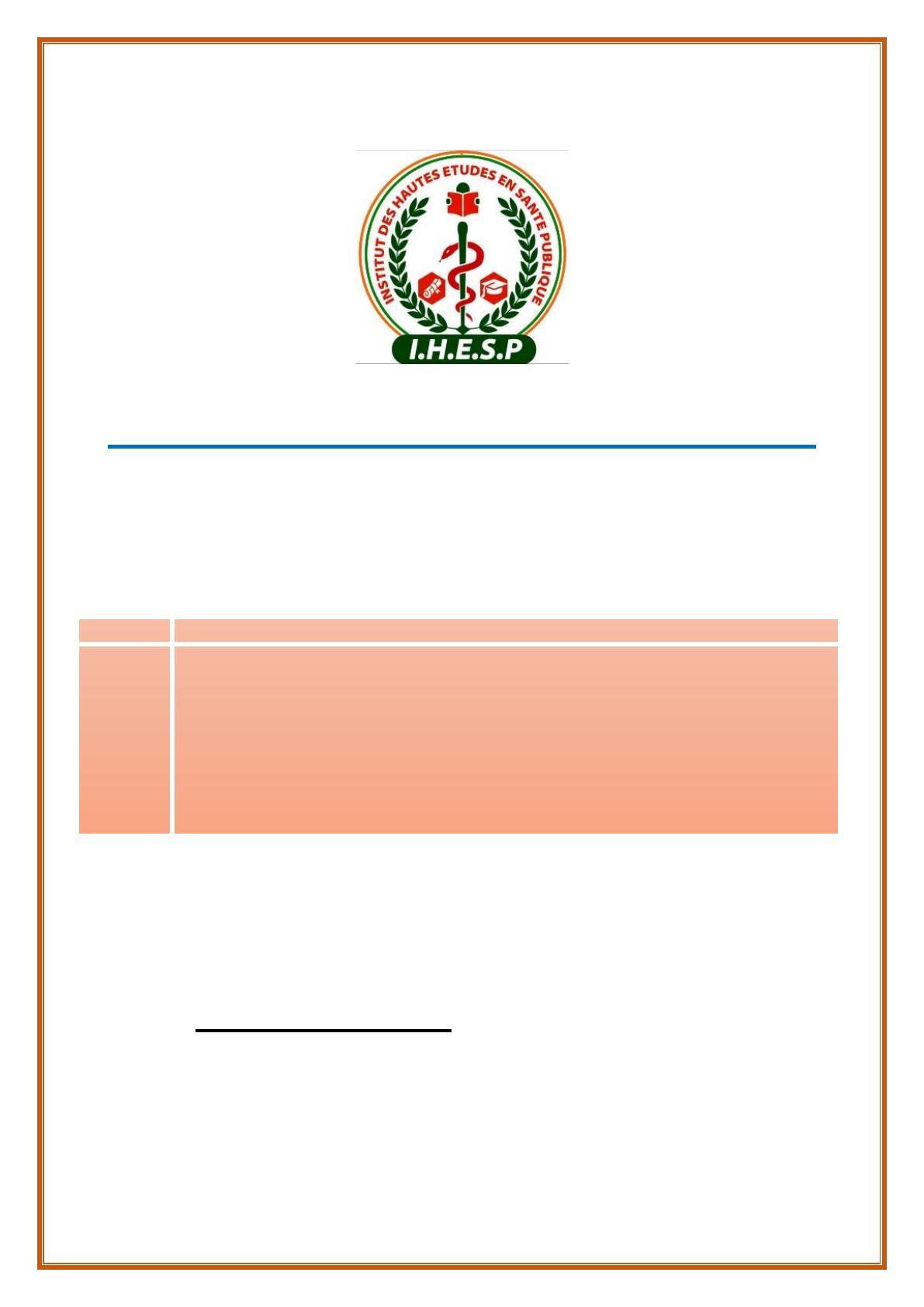 INSTITUT DES HAUTES ÉTUDES EN SANTE PUBLIQUE