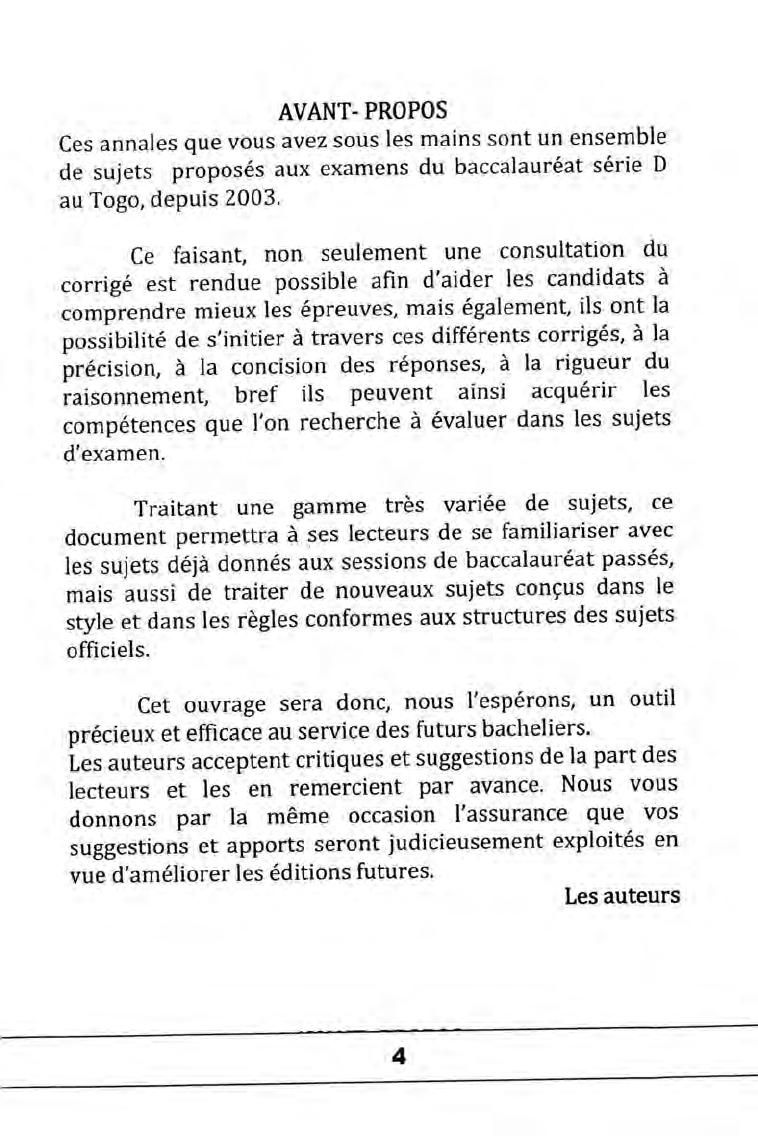 les sujets déjà donnés aux sessions de baccalauréat passés,