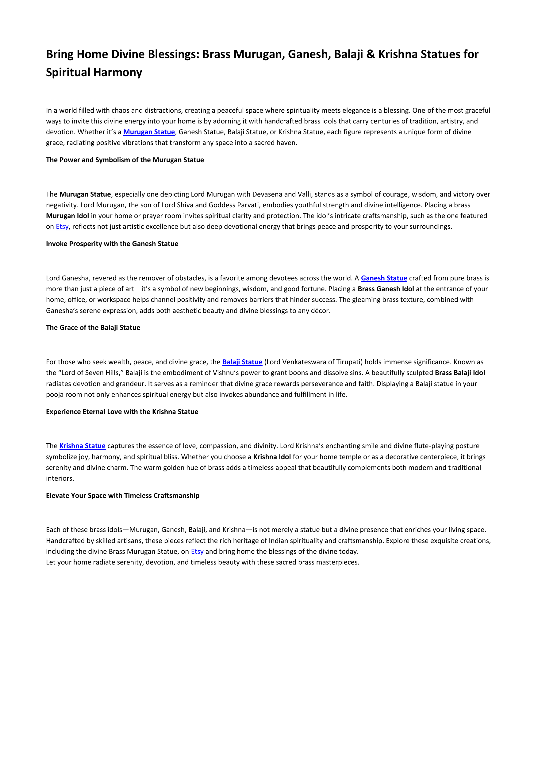 including the divine Brass Murugan Statue, on Etsy and bring home the blessings of the divine today.