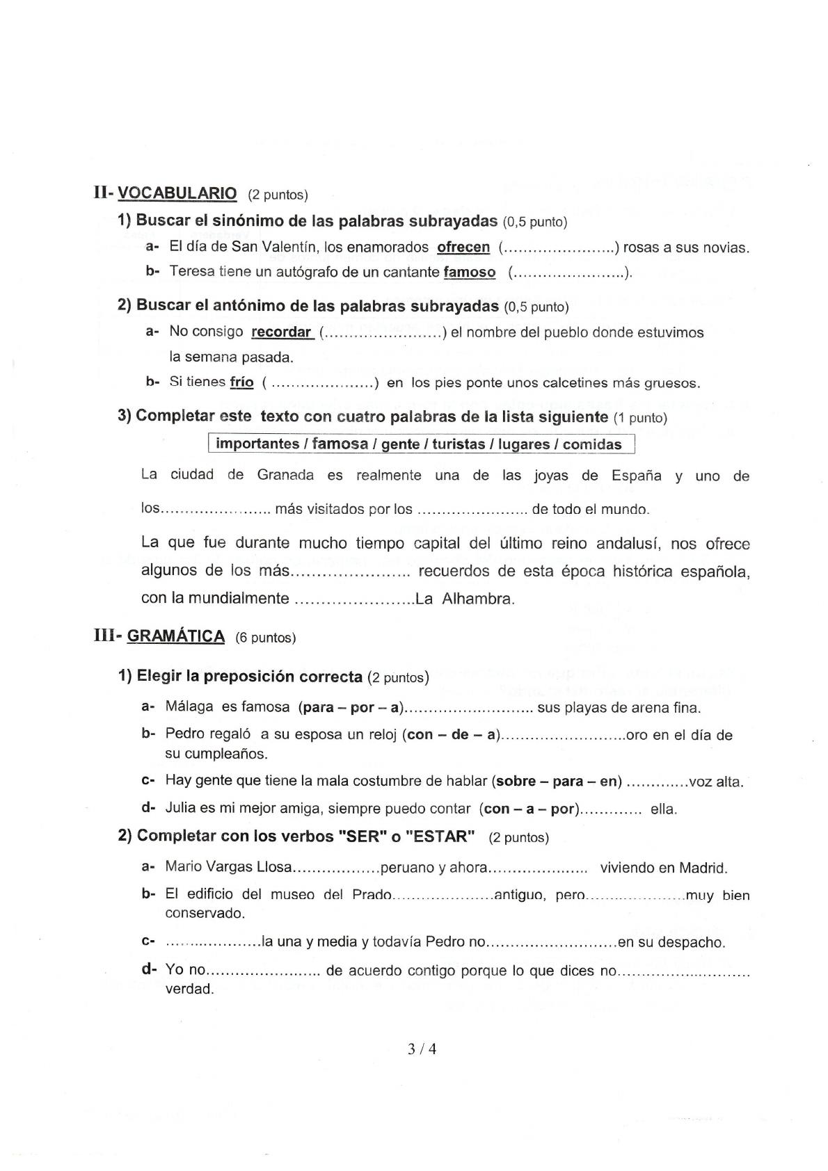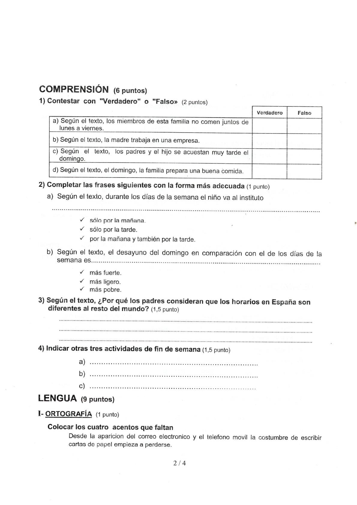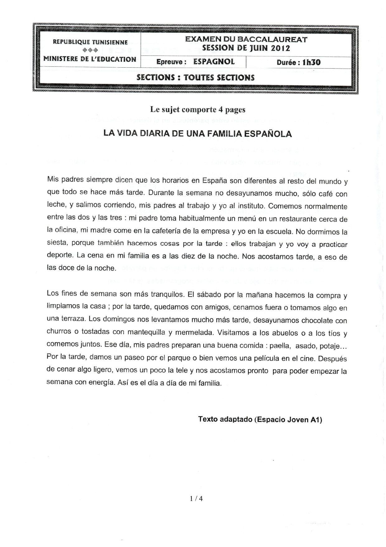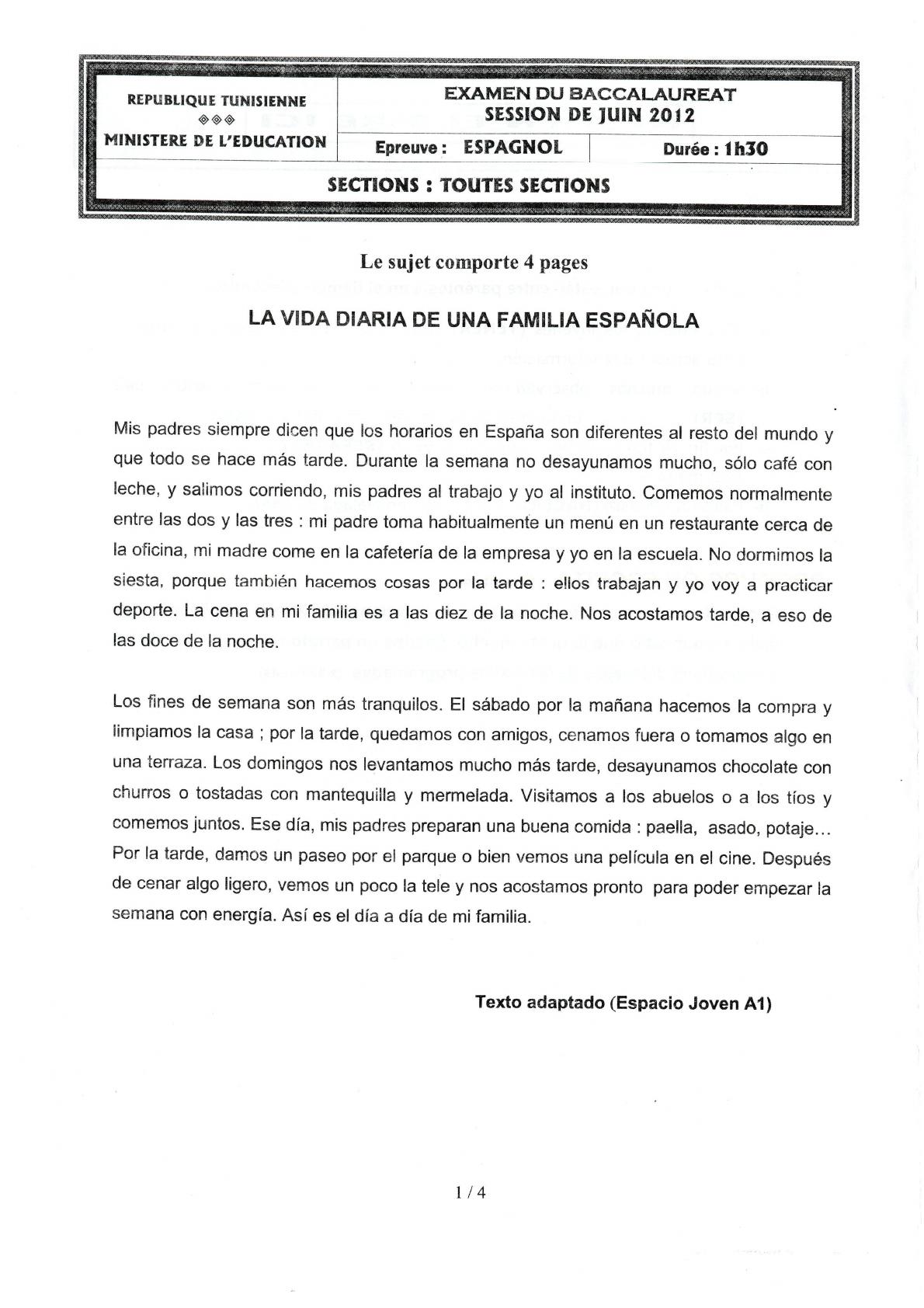 Examen d'Espagnol: La Vie Quotidienne d'une Famille Espagnole