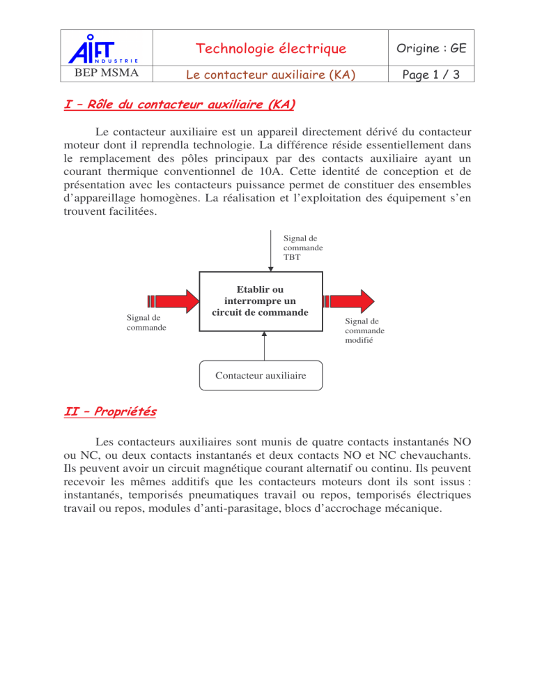 Le contacteur auxiliaire est un appareil directement dérivé du contacteur