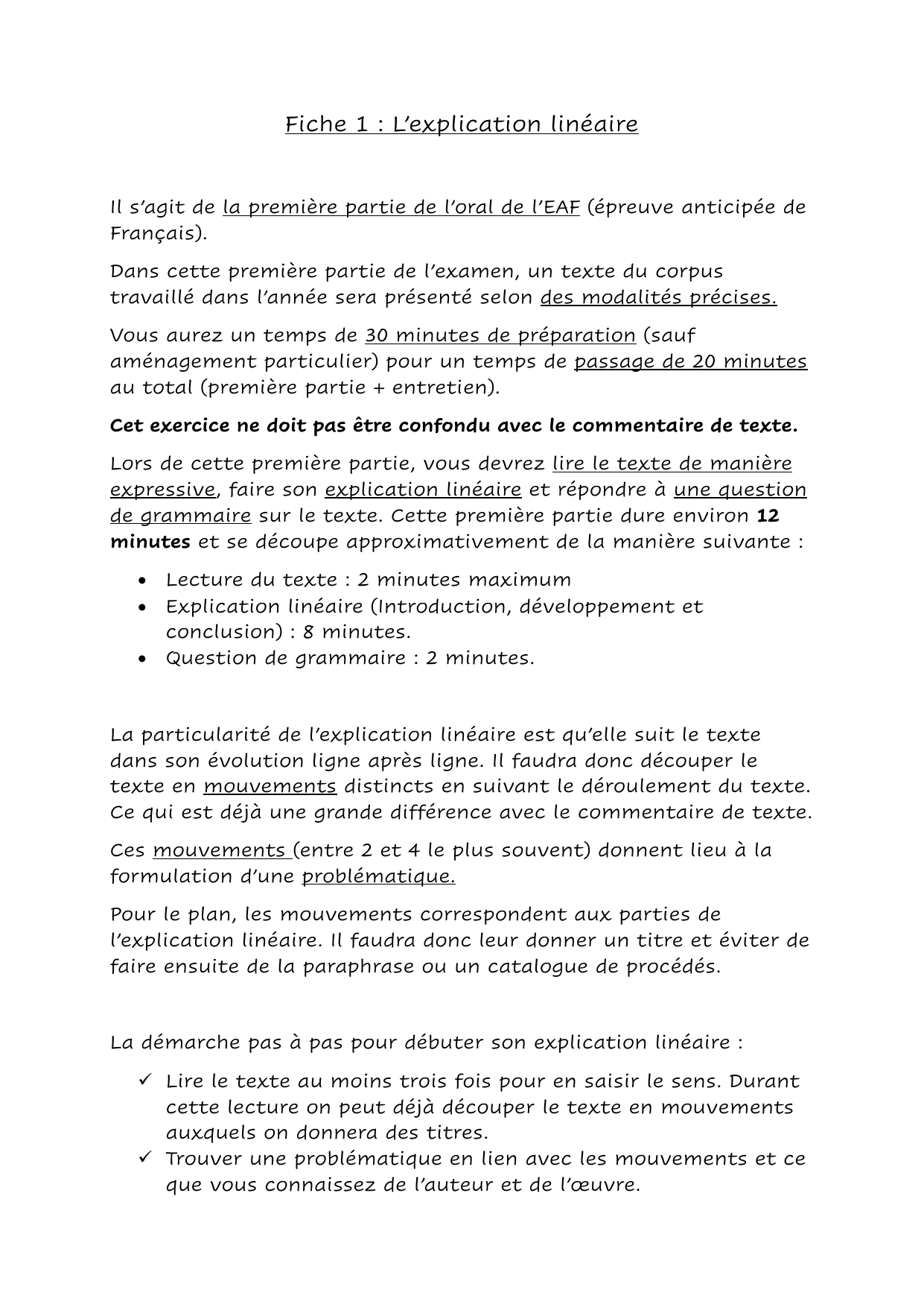 l’explication linéaire. Il faudra donc leur donner un titre et éviter de
