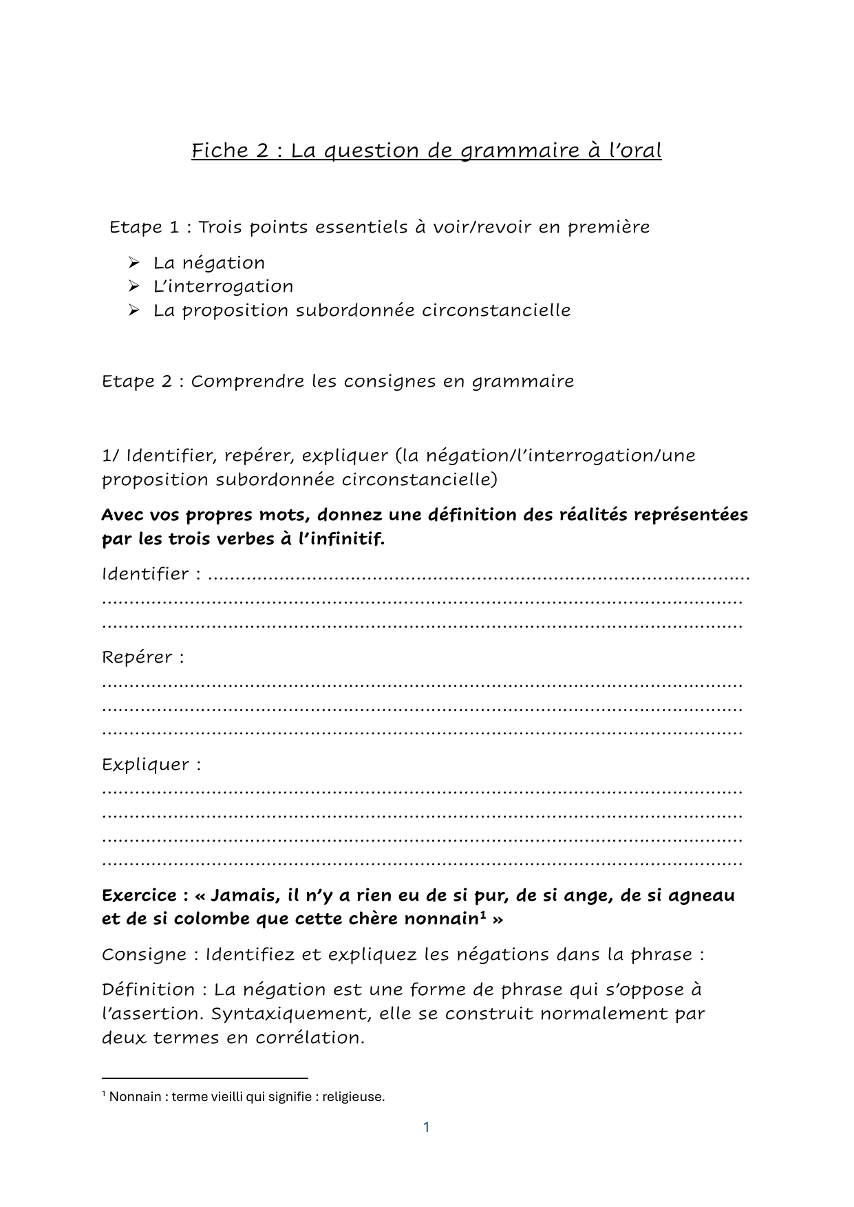 2/ Analyser la construction syntaxique ou faire l’analyse logique