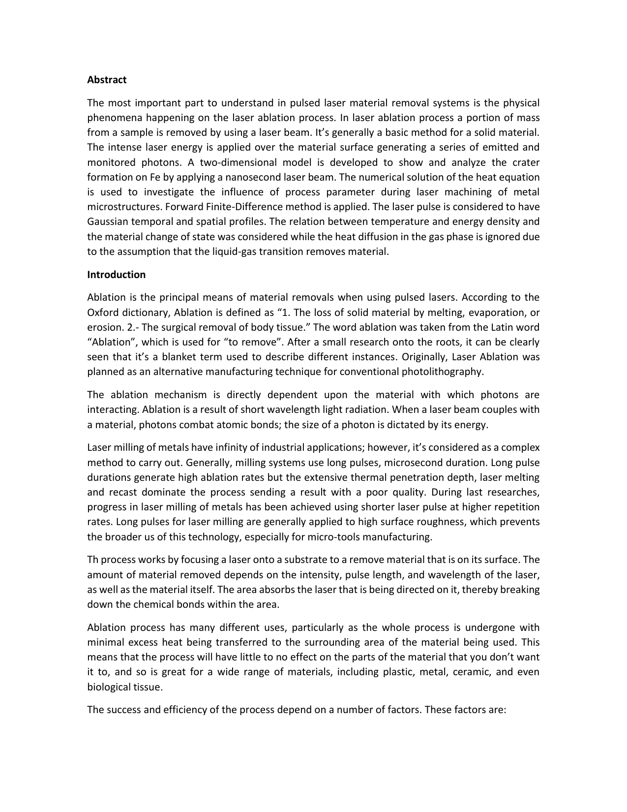 phenomena happening on the laser ablation process. In laser ablation process a portion of mass