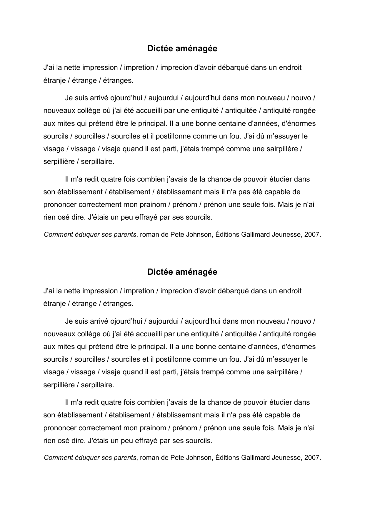 sourcils / sourcilles / sourciles et il postillonne comme un fou. J'ai dû m’essuyer le