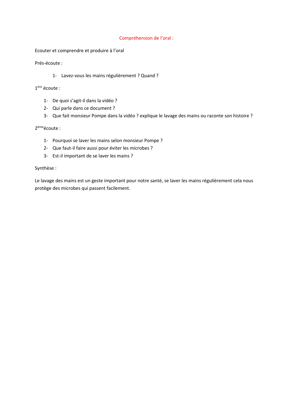 Compréhension de l’oral :
