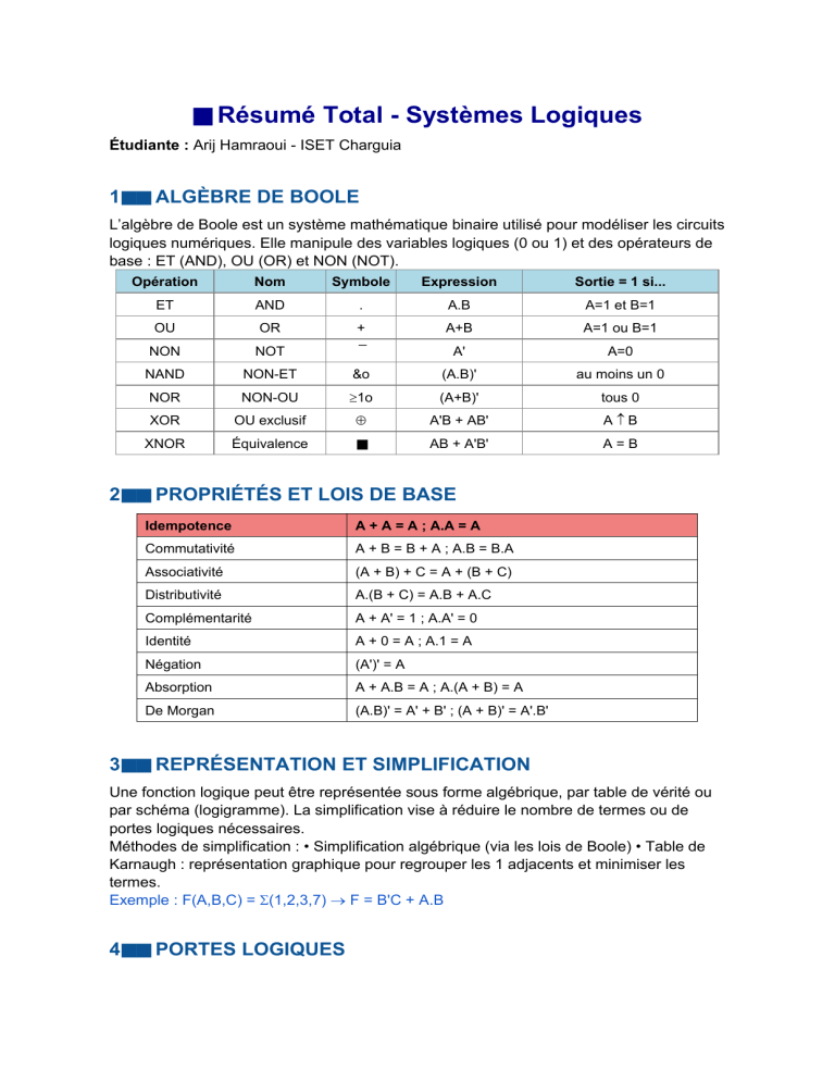 partir de tables de vérité • Commutation dans les processeurs et systèmes de