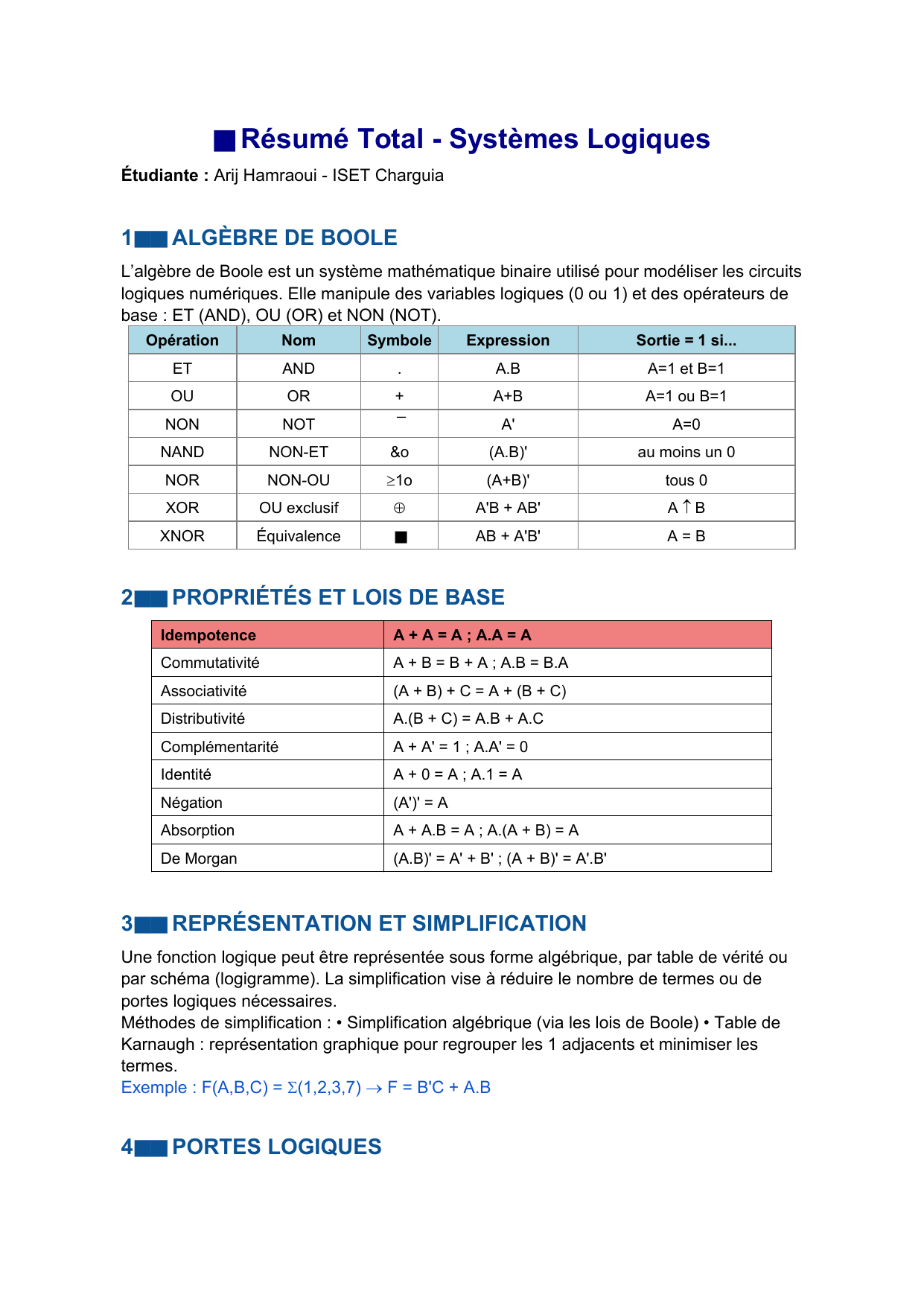 OU ≥1 Y = A + B Sortie 1 si au moins une entrée est 1