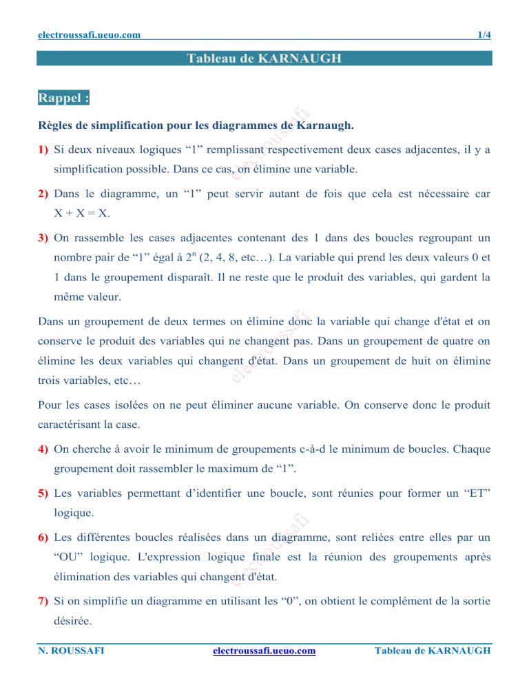 N. ROUSSAFI electroussafi.ueuo.com Tableau de KARNAUGH