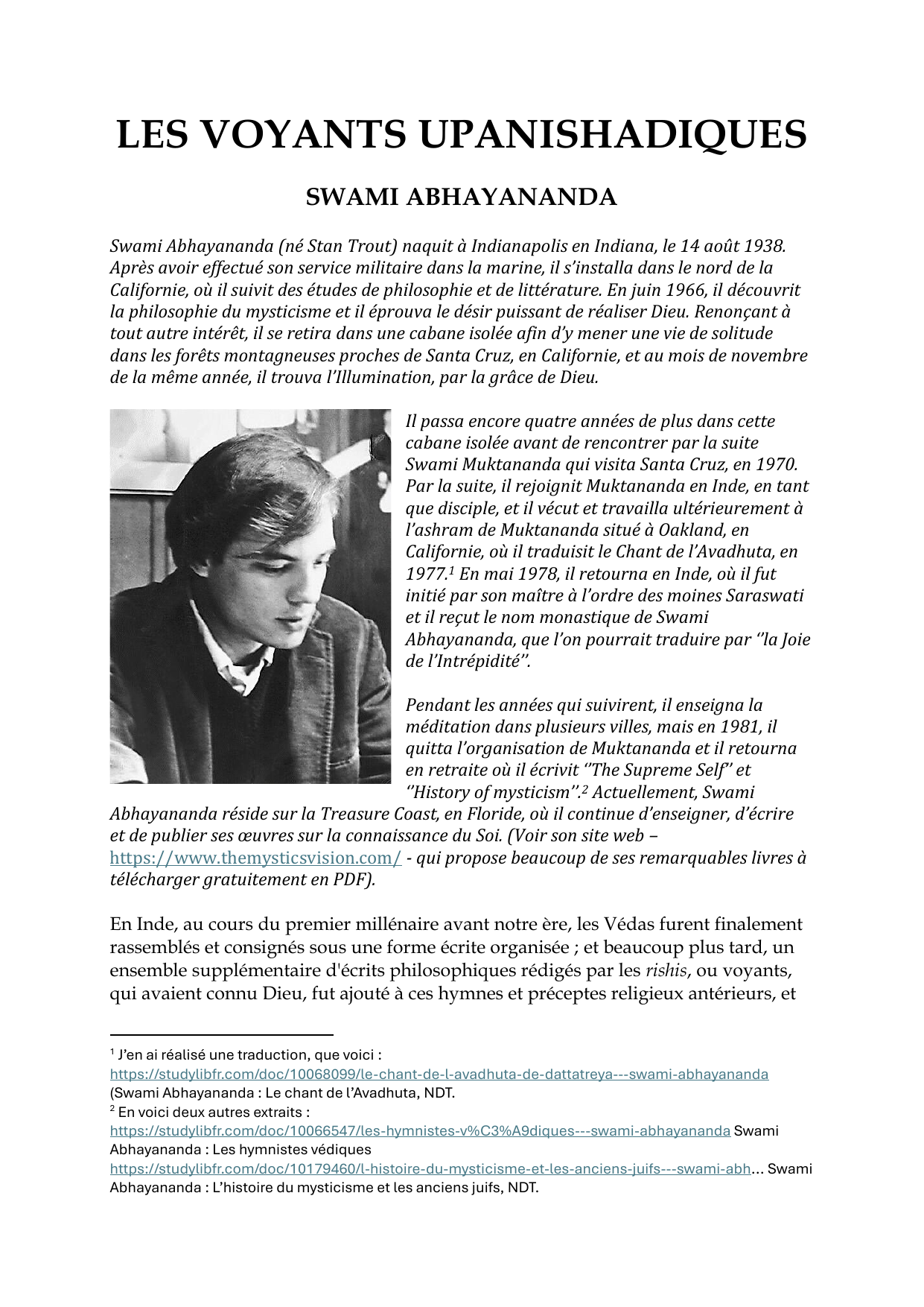 C'est dans les Upanishads que nous entendons pour la première fois ces voyants