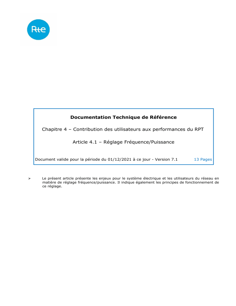 permanent (200 mHz pour la zone synchrone d’Europe Continentale), les utilisateurs du réseau