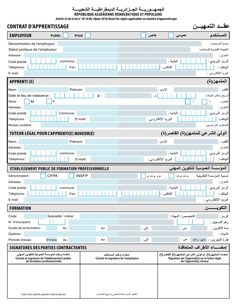 Article 22 de la loi n° 18-10 du 10juin 2018,xant les règles applicables en matière d'apprentissage