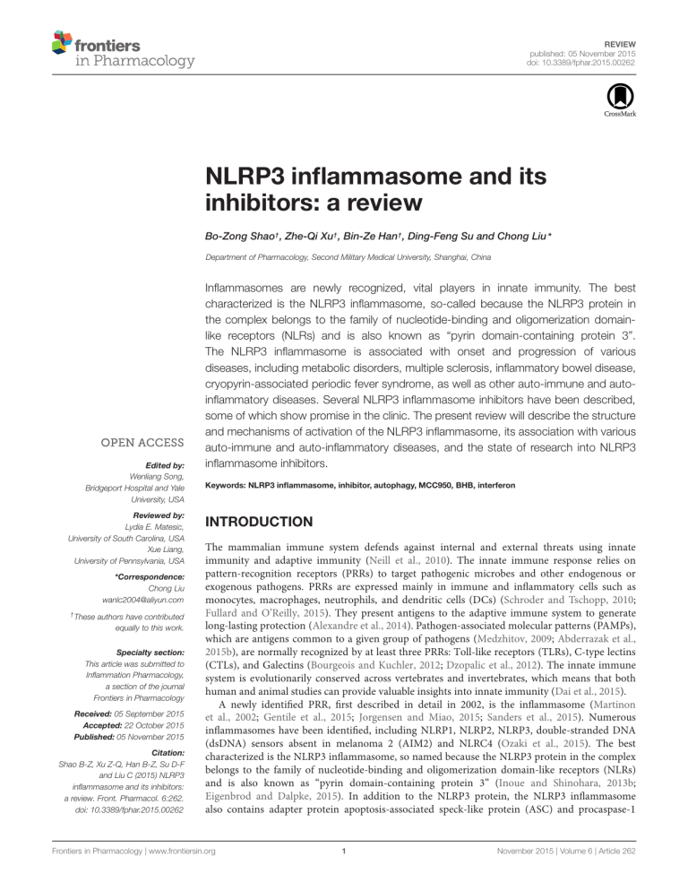 Shao et al. NLRP3 inflammasome and inhibitors