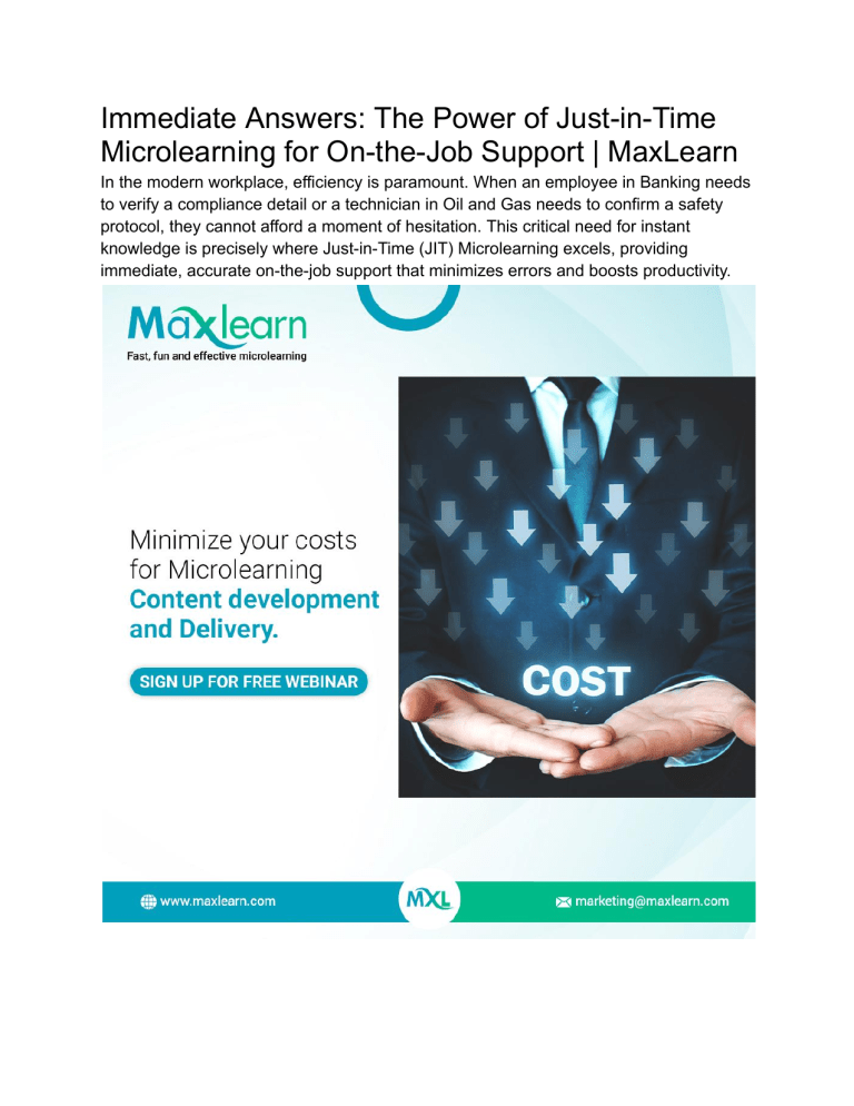 resources (like long manuals or calling a supervisor) are slow. JIT microlearning solves