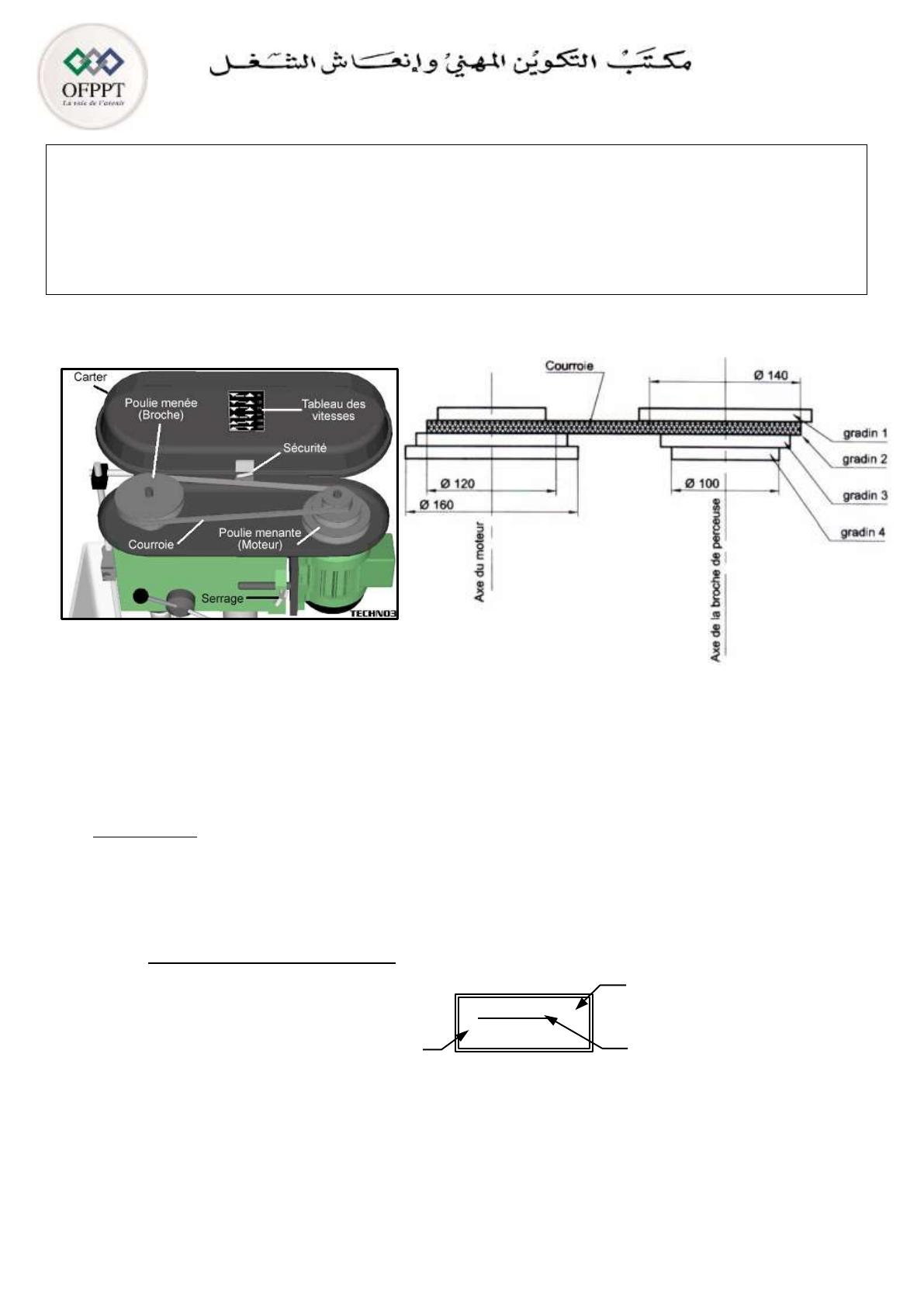 On place la courroie sur le gradin 1. Calculer alors le rapport de transmission
