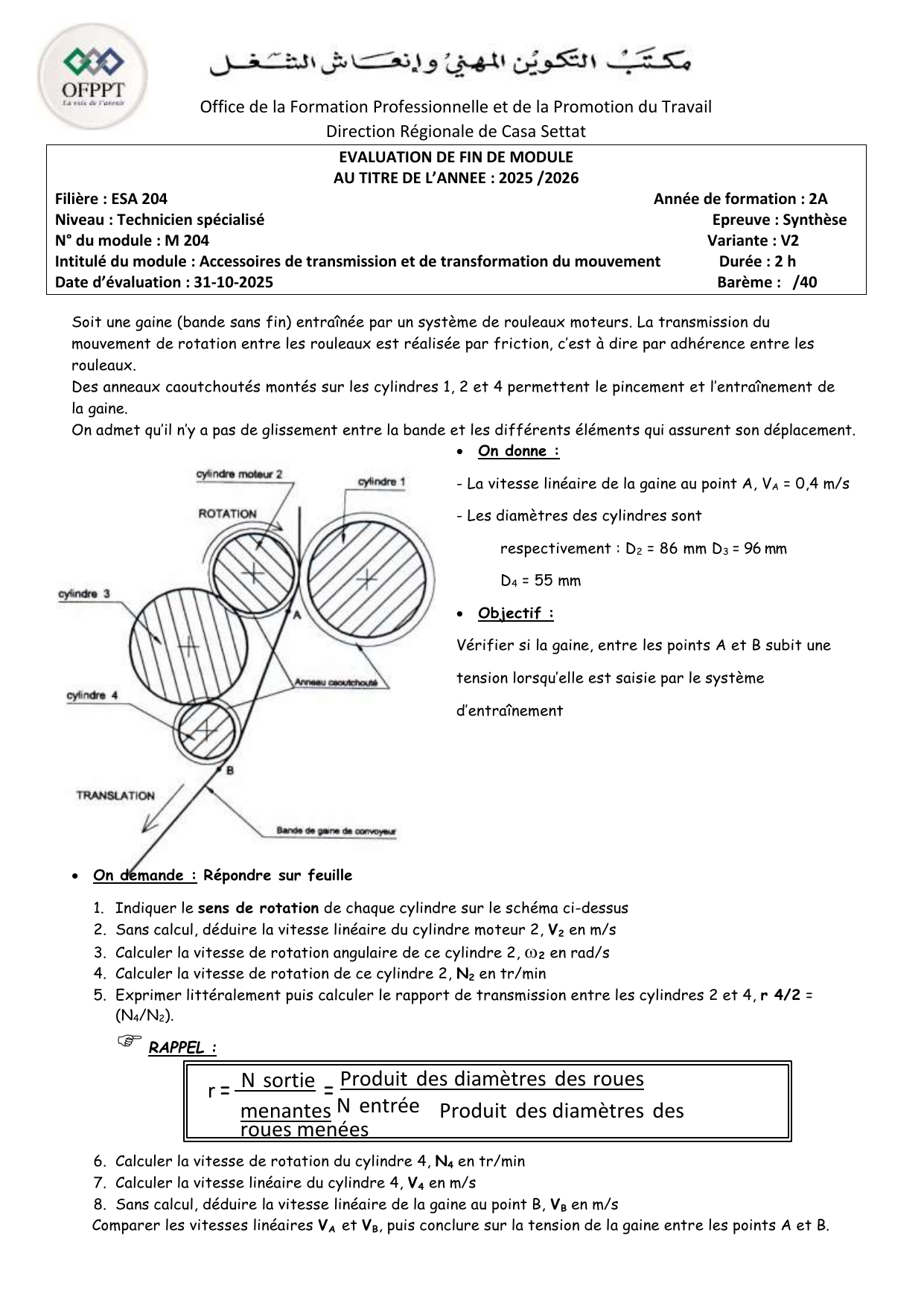 Intitulé du module : Accessoires de transmission et de transformation du mouvement Durée : 2 h