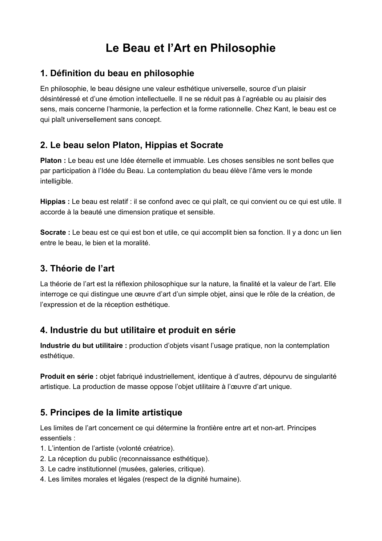 Platon : Le beau est une Idée éternelle et immuable. Les choses sensibles ne sont belles que