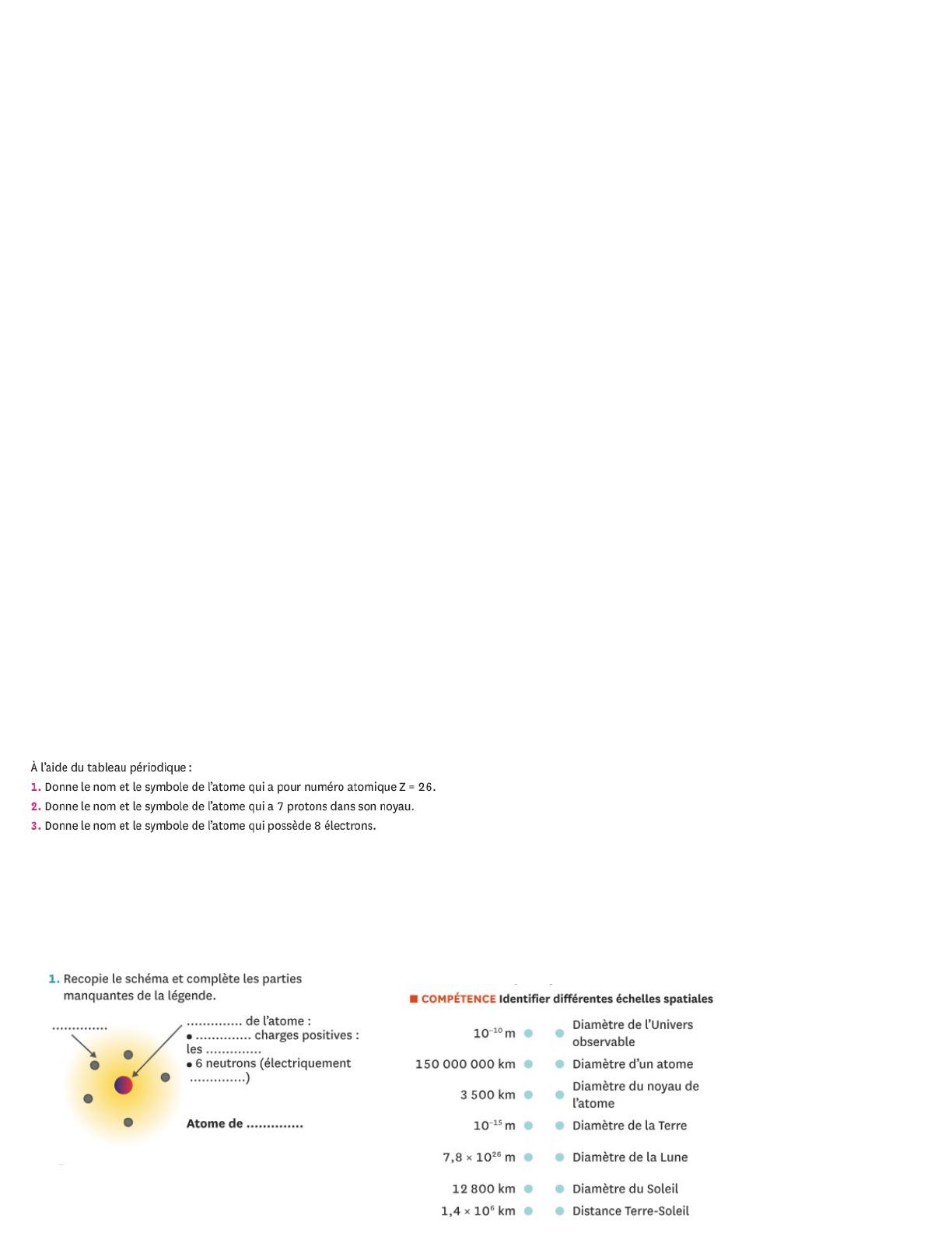 2. Doc. 1 : L’atome d’hydroge%ne est une exception puisqu’il ne comporte que deux particules. Identifie lesquelles