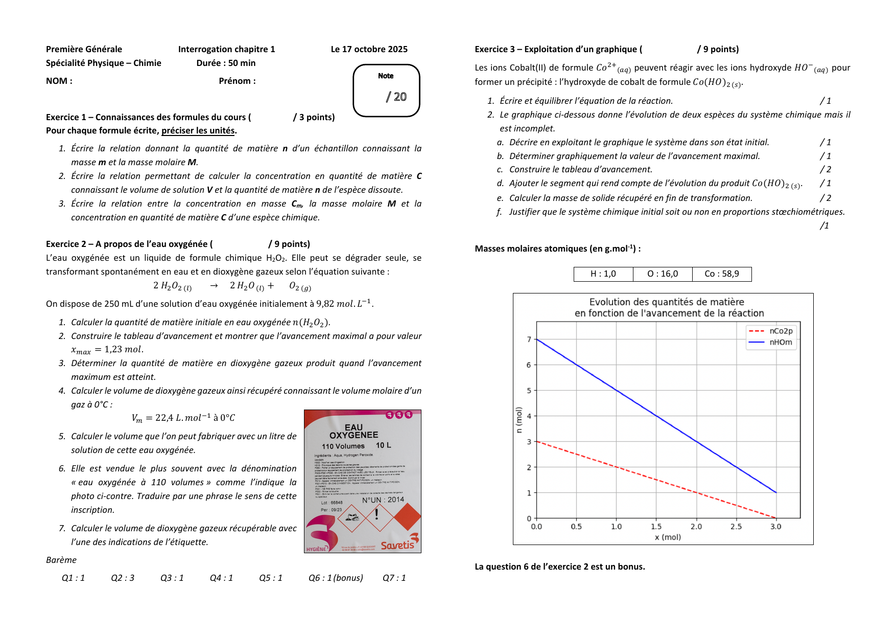 Exercice 2 – A propos de l’eau oxygénée ( / 9 points)