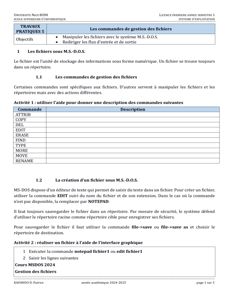 UNIVERSITE NAZI BONI LICENCE PREMIERE ANNEE SEMESTRE 1