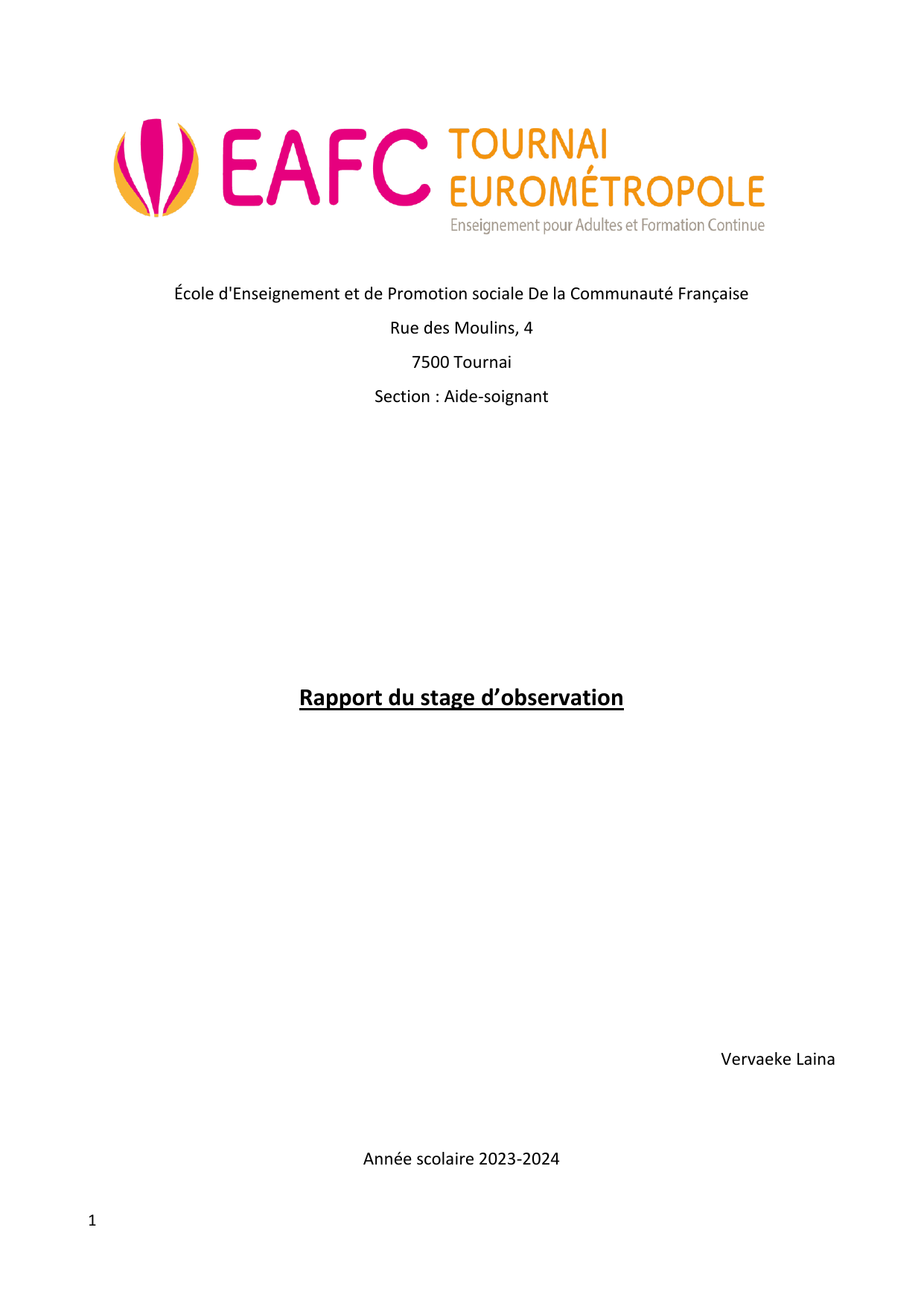 de soins “l’Abbaye” qui se situe à Kain. Lors de ce stage, j'ai pu observer le fonctionnement