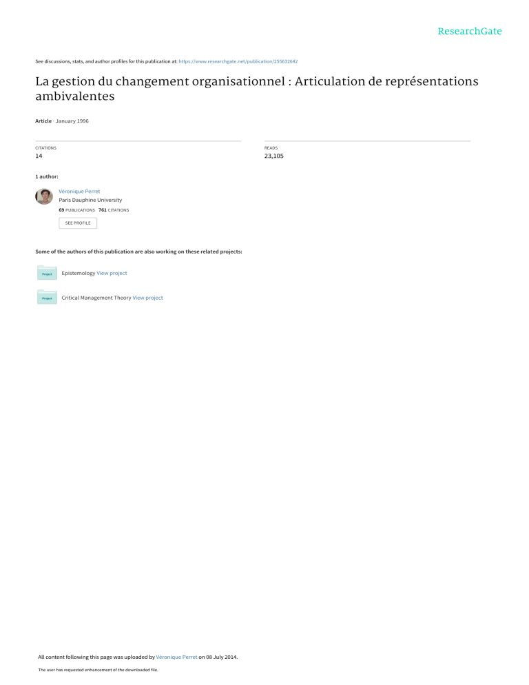 prédominant la littérature managériale sur le changement, partagent et développent dans leurs
