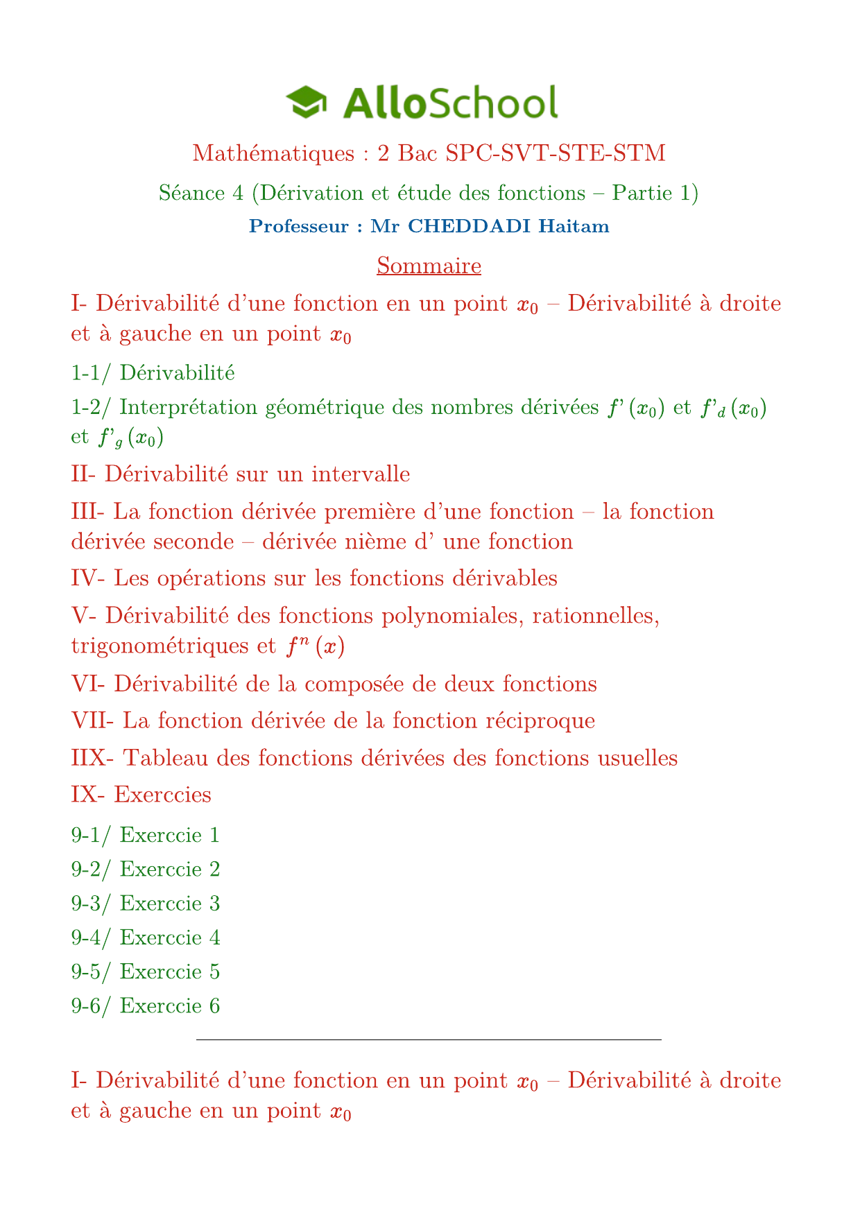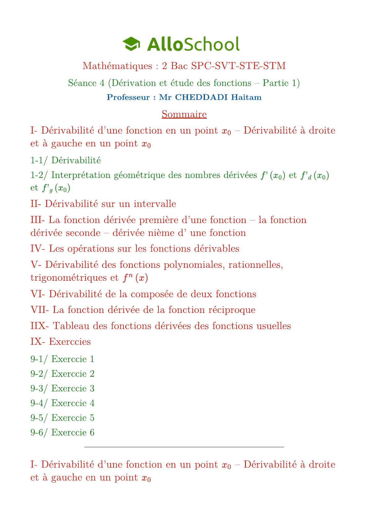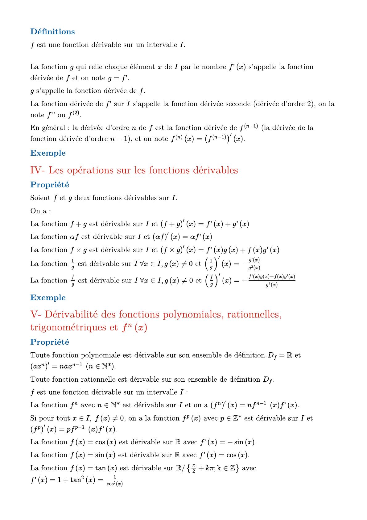 Mathématiques 2 Bac: Dérivation et Fonctions - Cours et Exercices