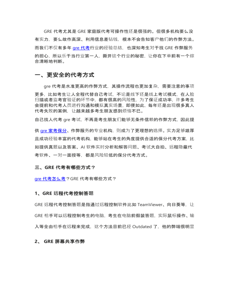 GRE 代考尤其是 GRE 家庭版代考可操作性还是很强的。但很多机构要么没