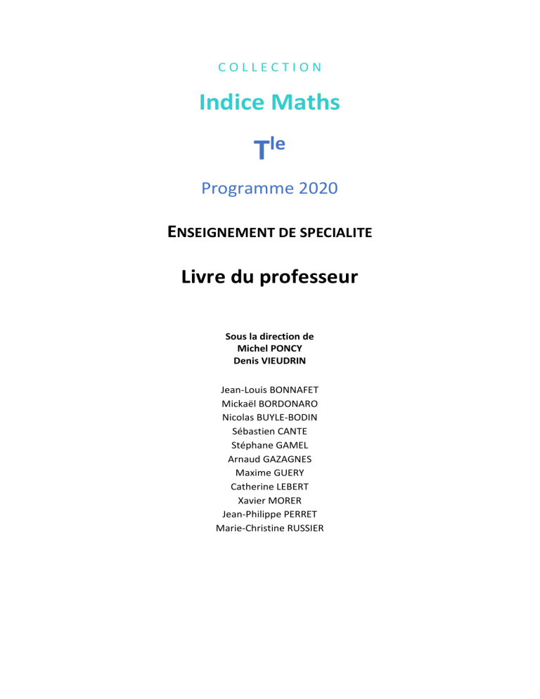Indice Terminale Enseignement de spécialité – Livre du professeur