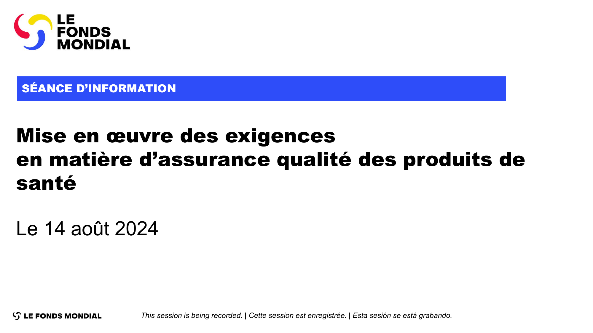 This session is being recorded. | Cette session est enregistrée. | Esta sesión se está grabando.