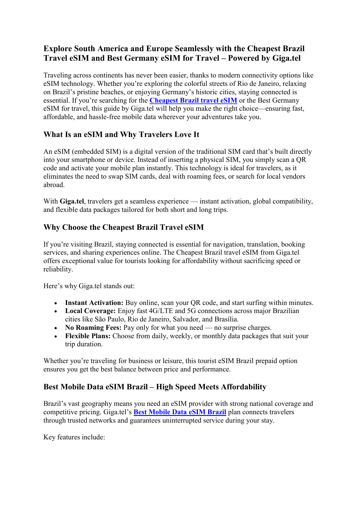 services, and sharing experiences online. The Cheapest Brazil travel eSIM from Giga.tel