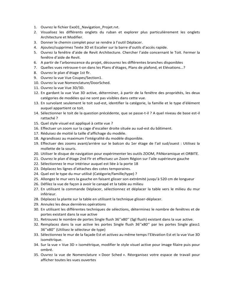 1. Ouvrez le fichier Exo01_Navigation_Projet.rvt.