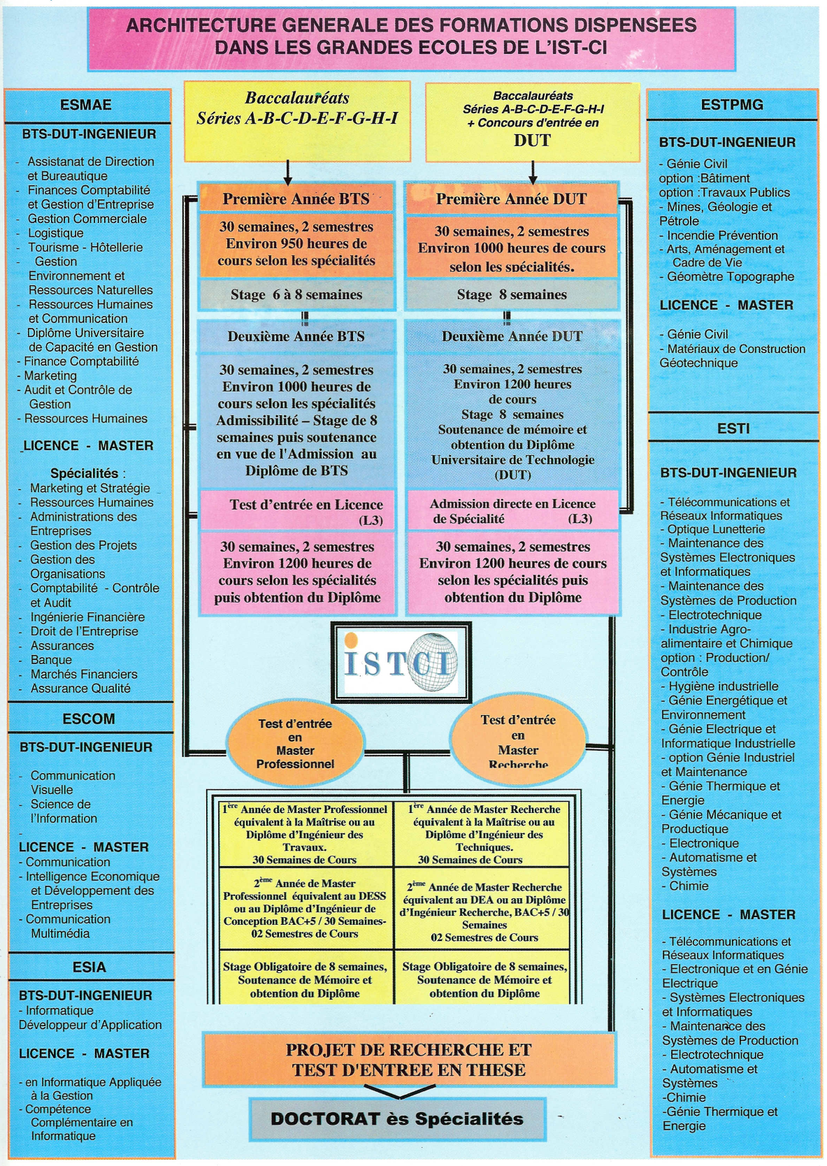 Architecture des Formations IST-CI: BTS, DUT, Licence, Master, Doctorat