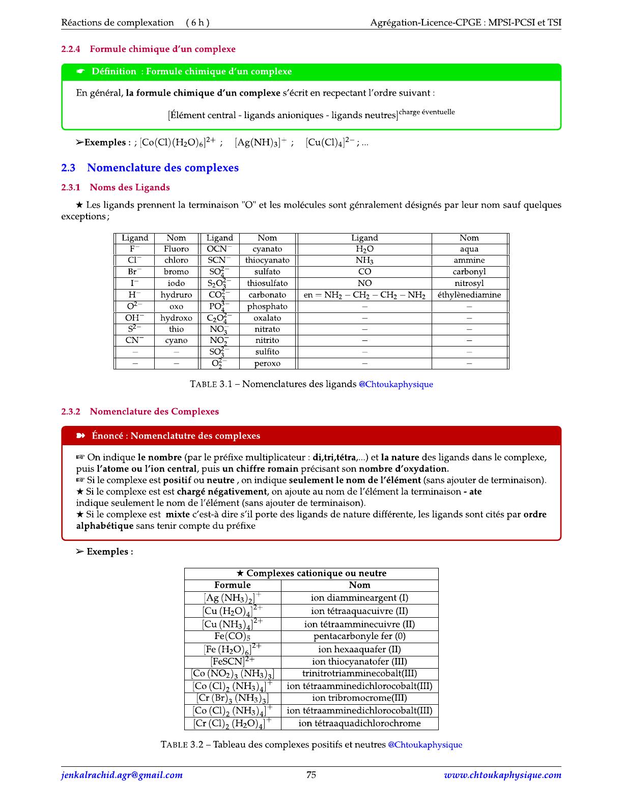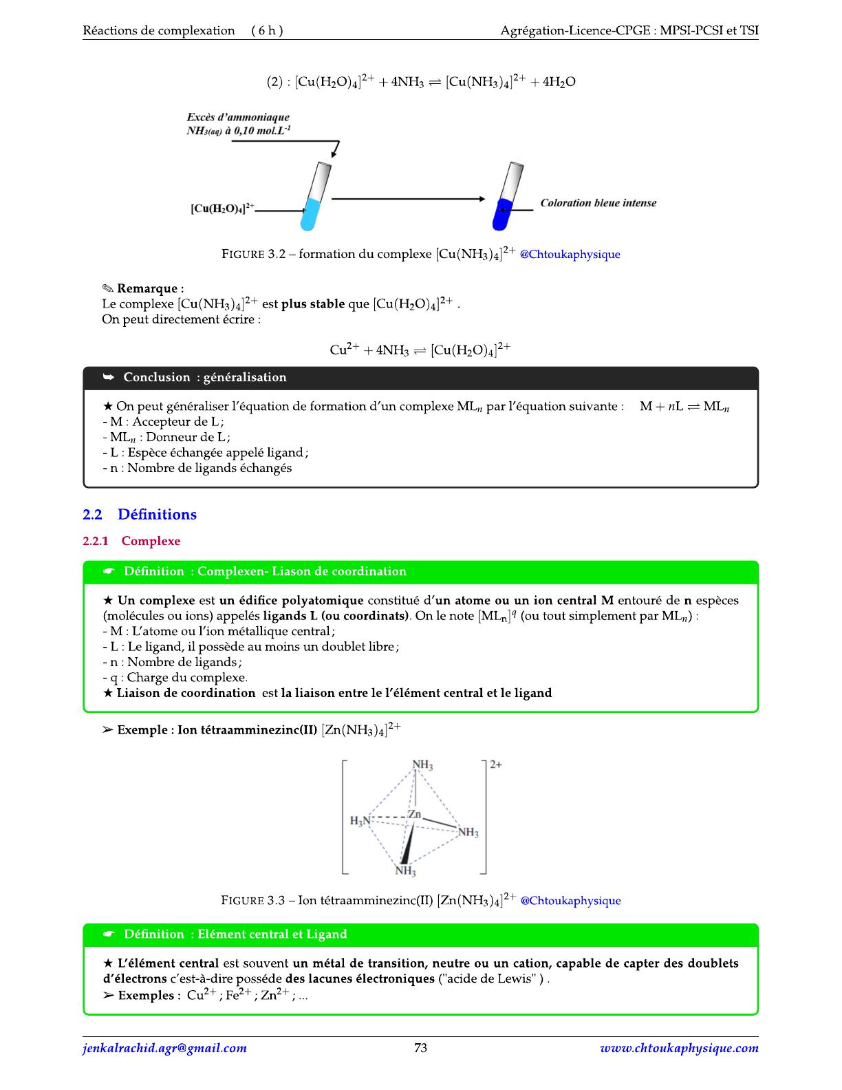 Réactions de Complexation: Chapitre 3 - Chimie des Complexes