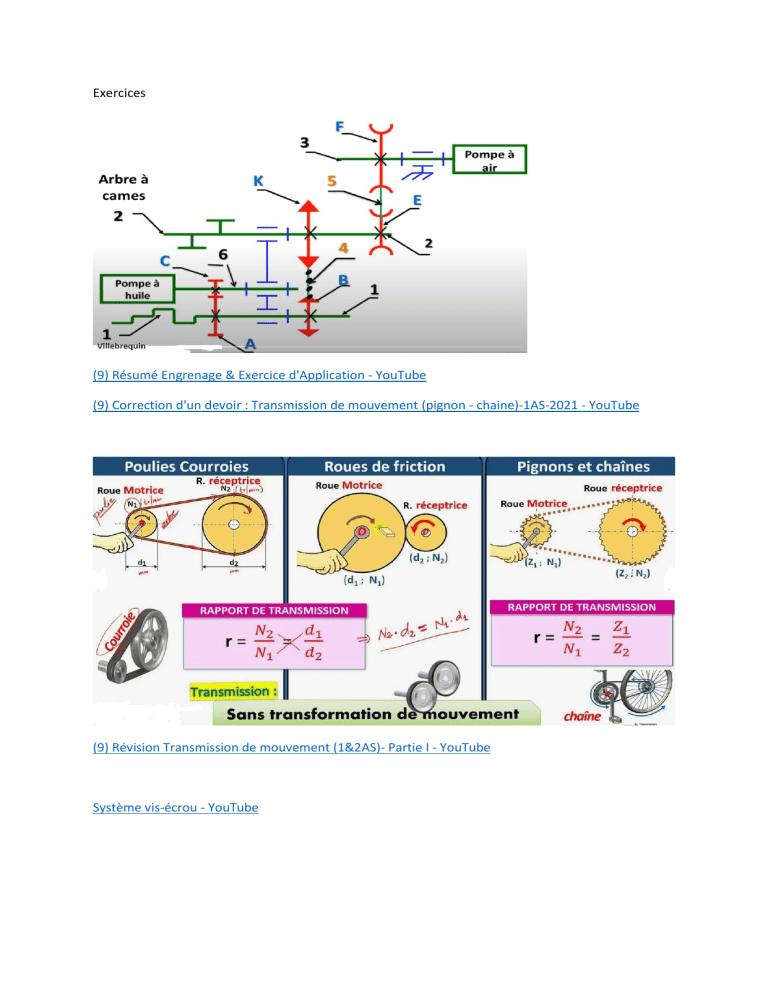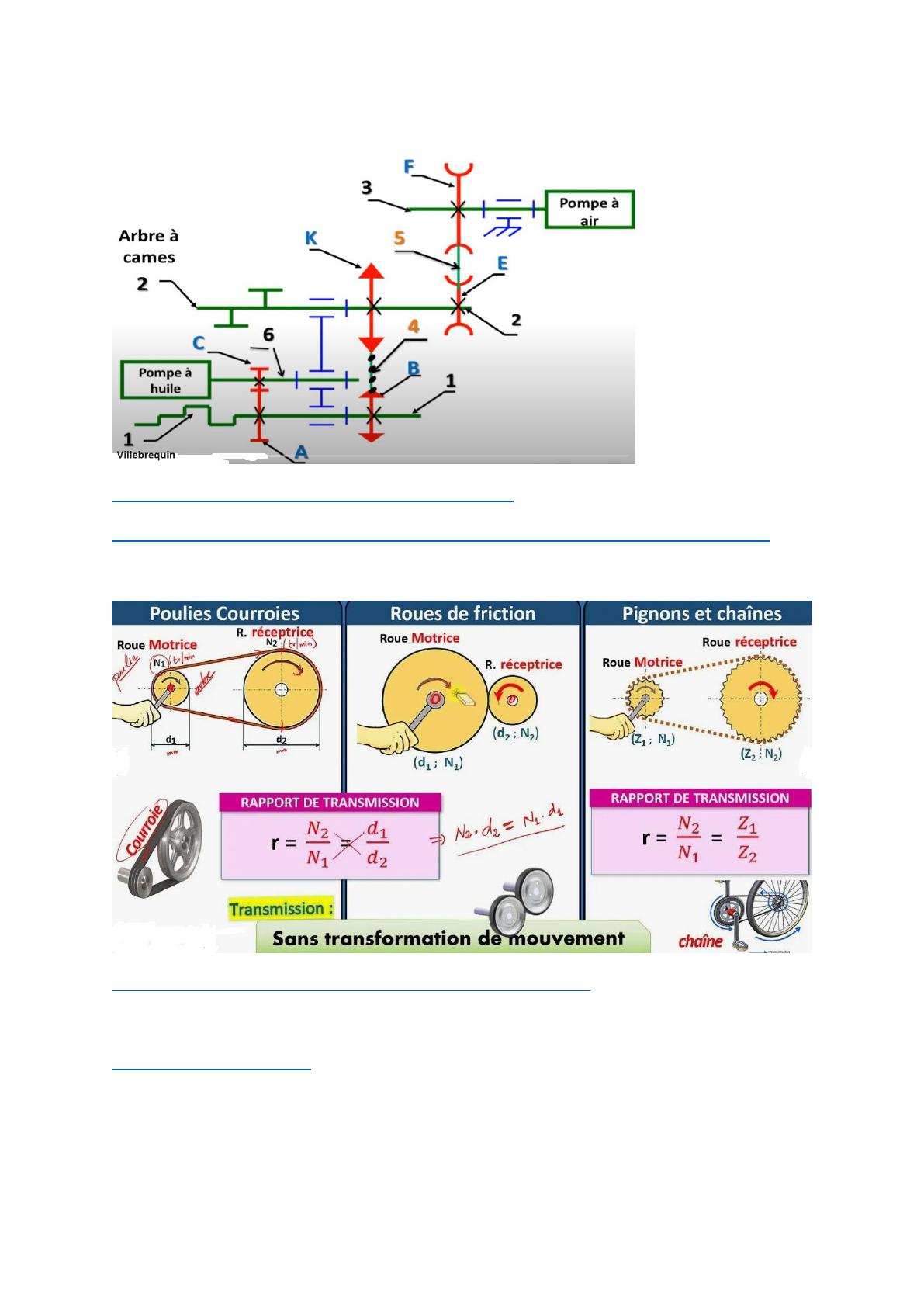 transmission par poulies et courroie, par chaîne et pignons et par engrenages de tous