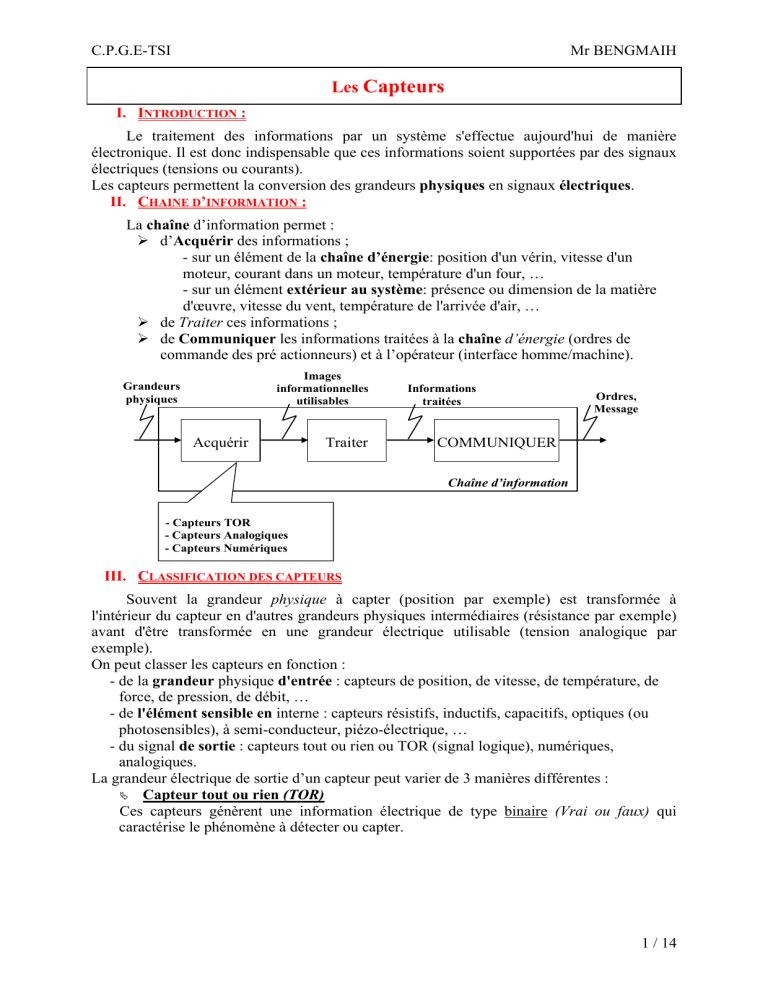 Fonctionnant en générateur, un capteur actif est généralement fondé dans son principe