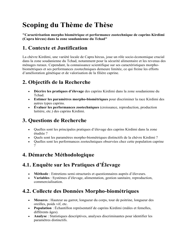 Scoping du Thème de Thèse